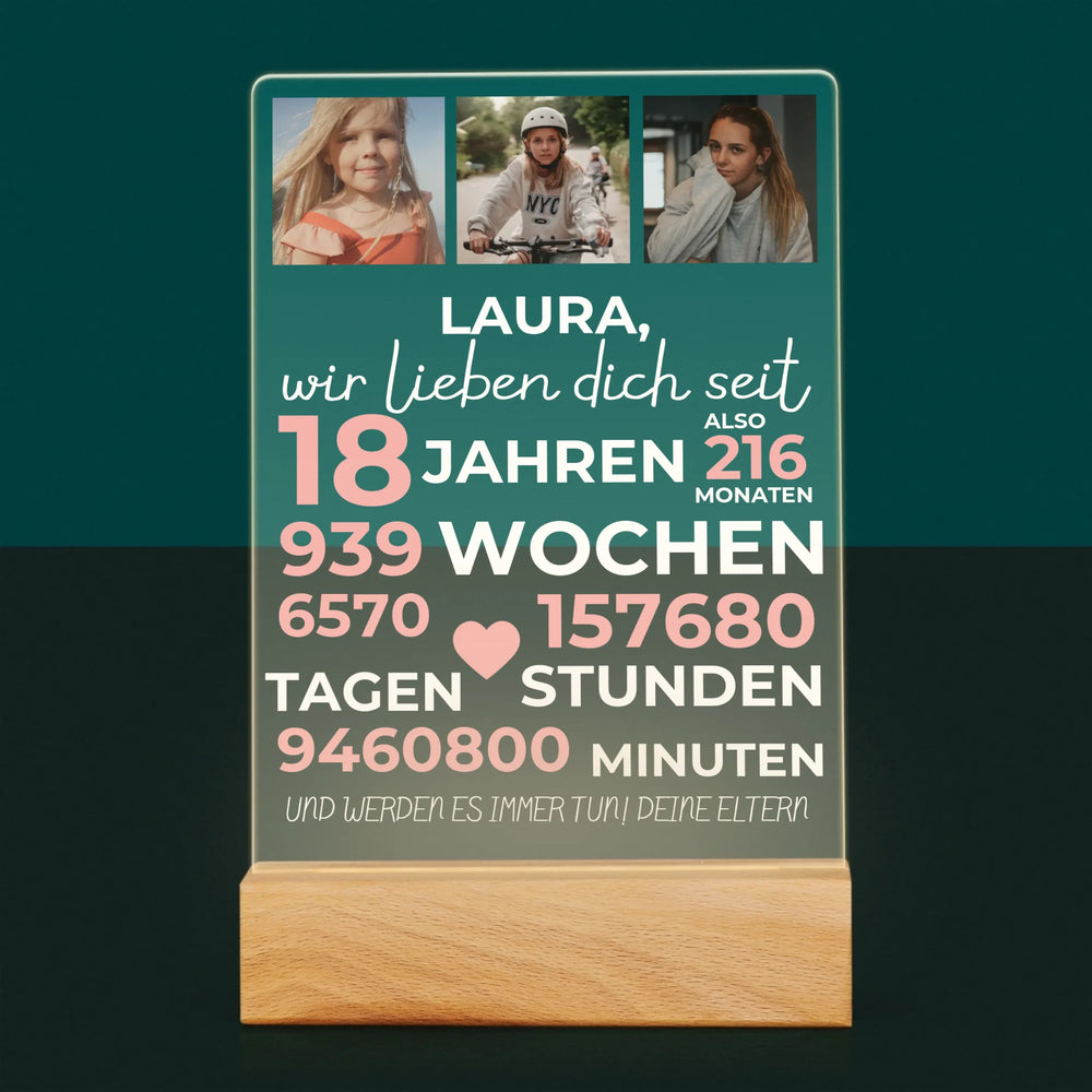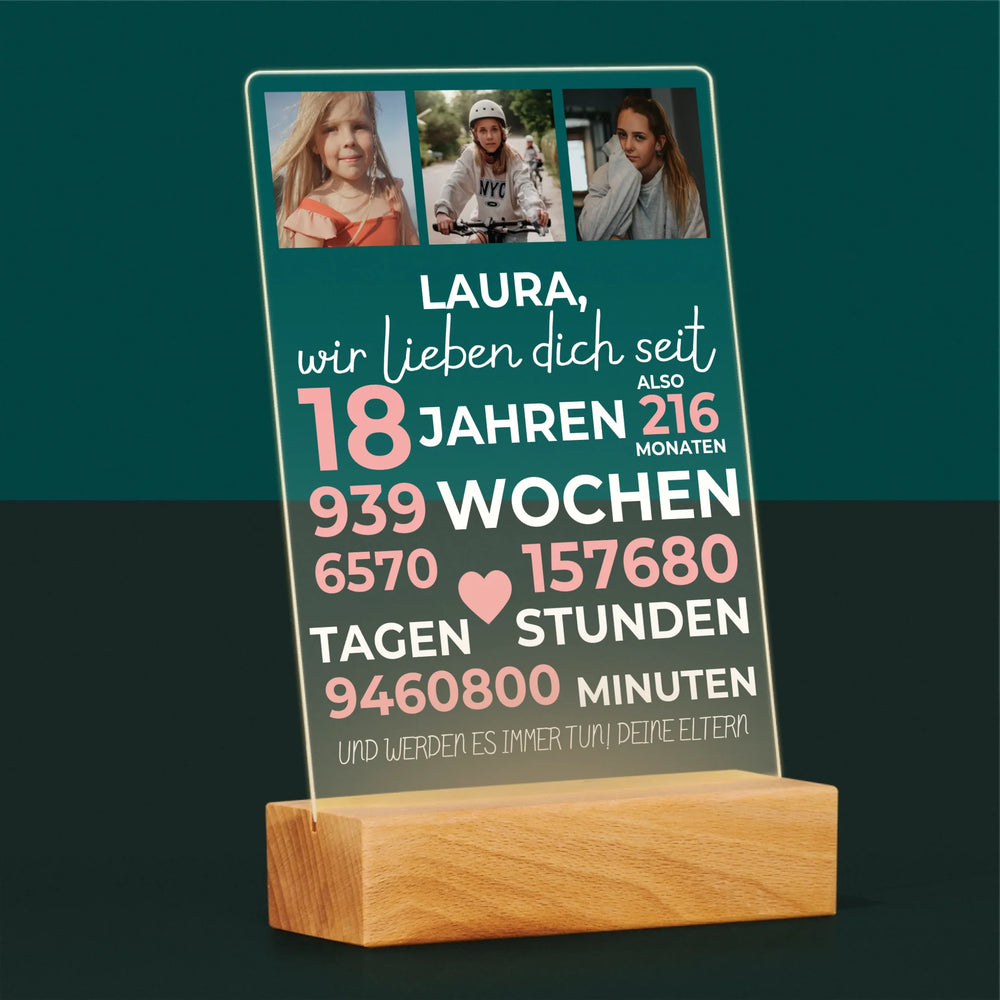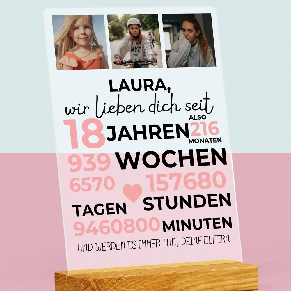 Fotocollage: Wir Lieben Dich Seit 18 Jahren - Druck auf Acrylglas