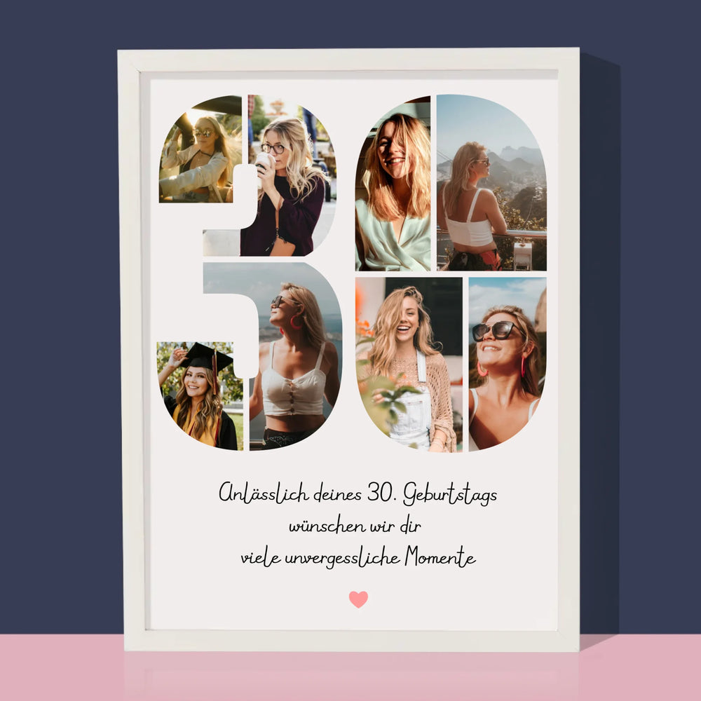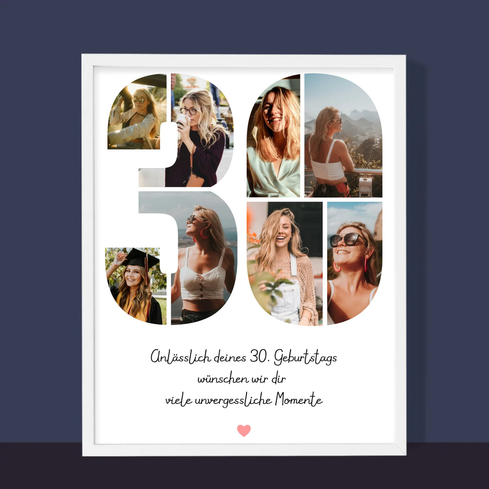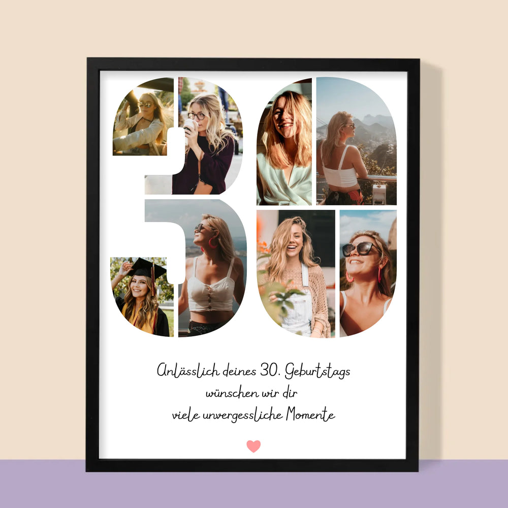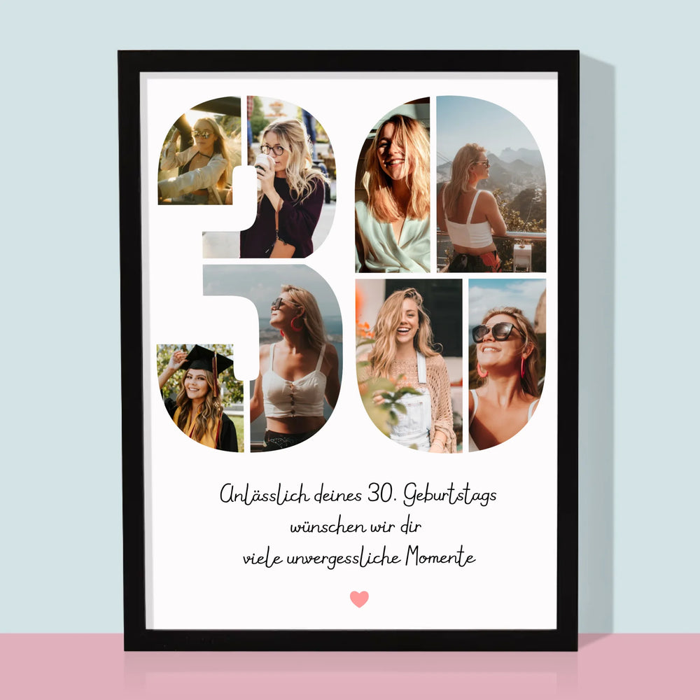 Fotocollage: Wünsche Zum 30. Geburtstag - Druck Mit Rahmen 30X40