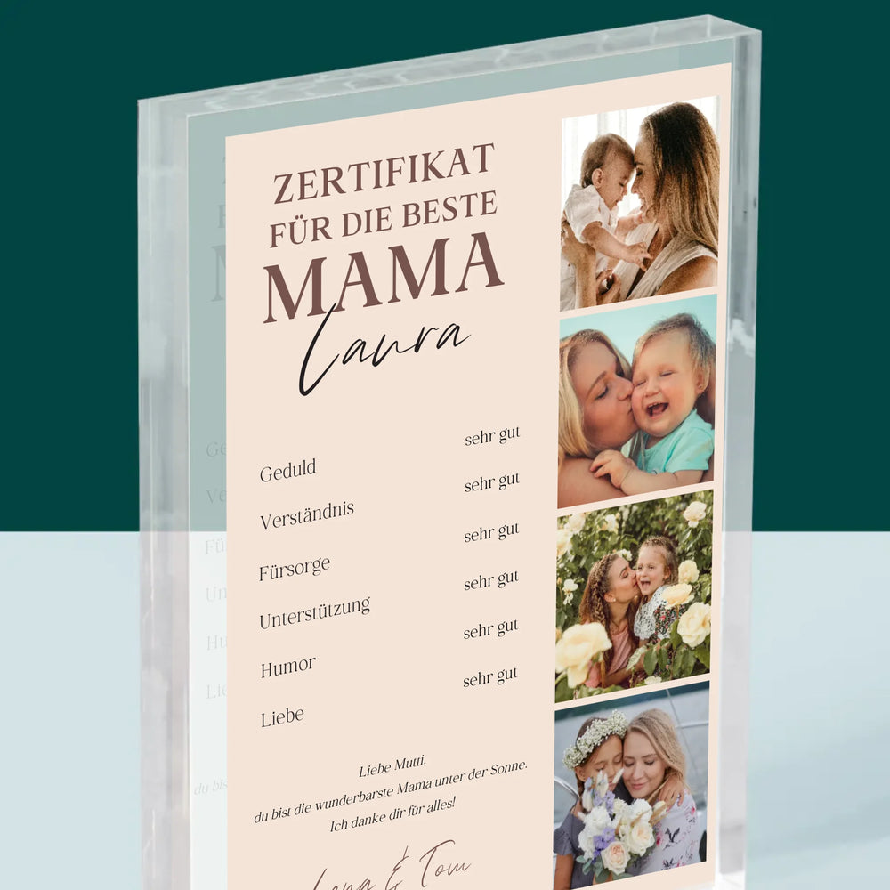 Fotocollage: Zertifikat Für Die Beste Mama - Acrylblock - Vertikal