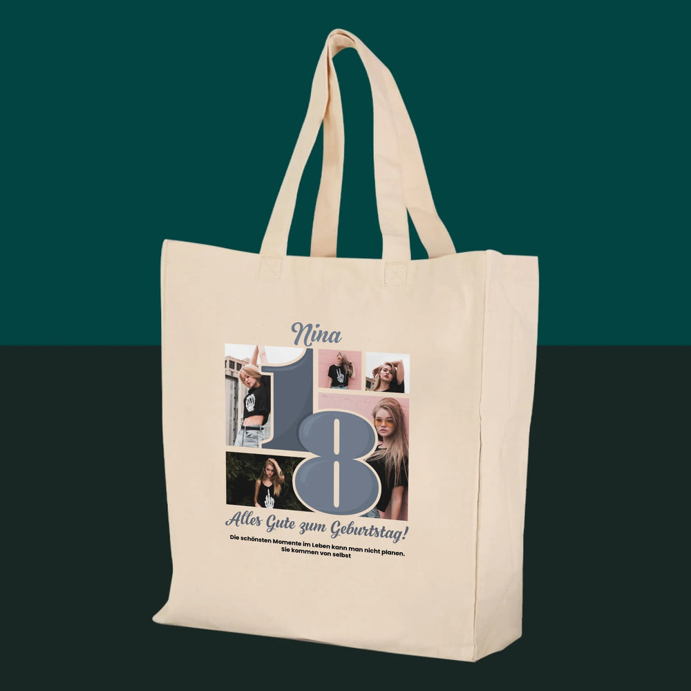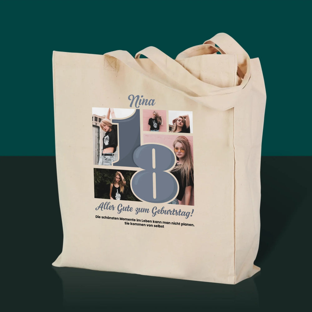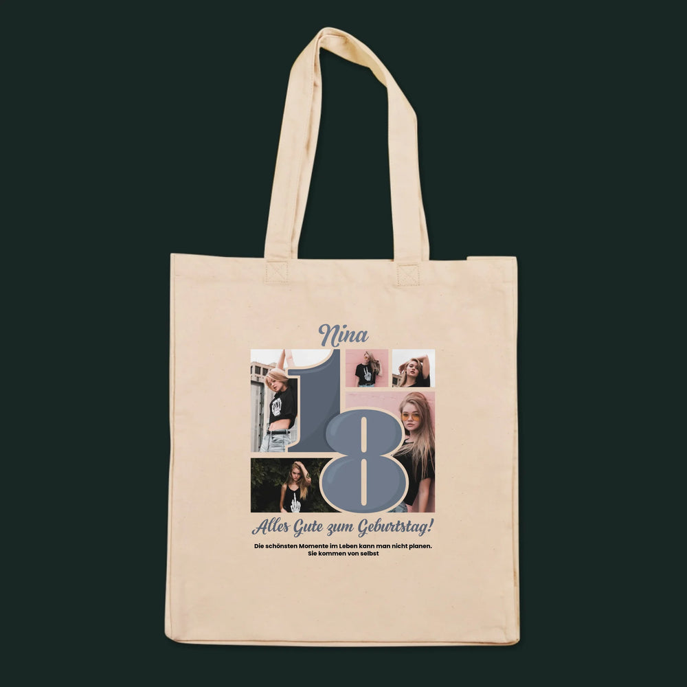 Fotocollage: 18 schönste Momente – Canvastasche mit Aufdruck | DE - Stofftasche