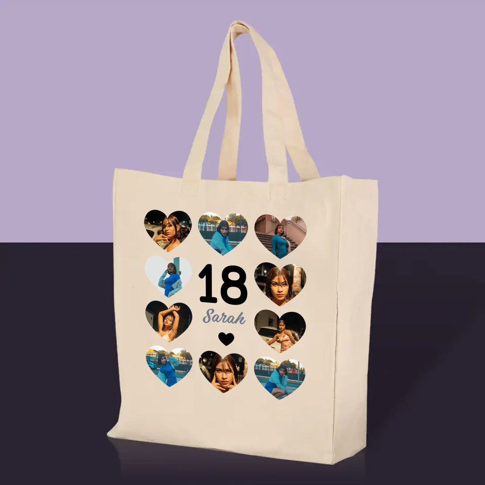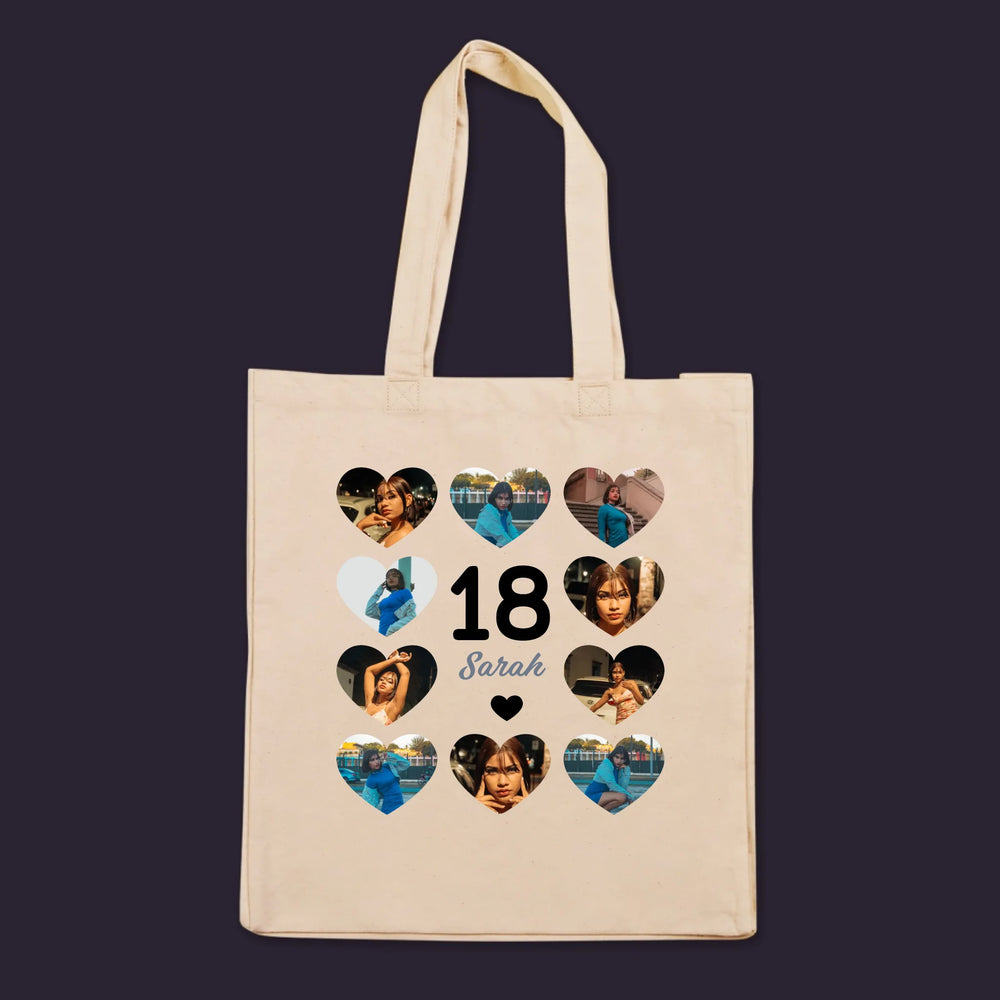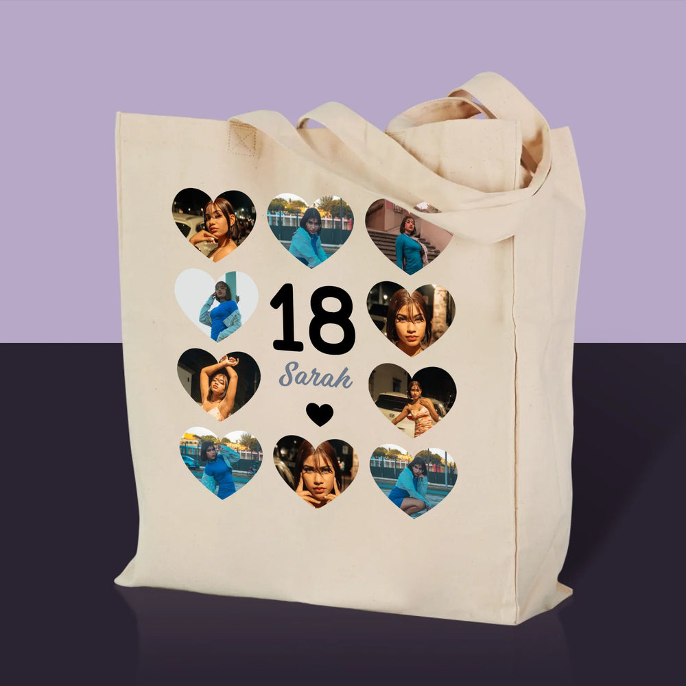 Fotocollage: 18 Herzen - Stofftasche