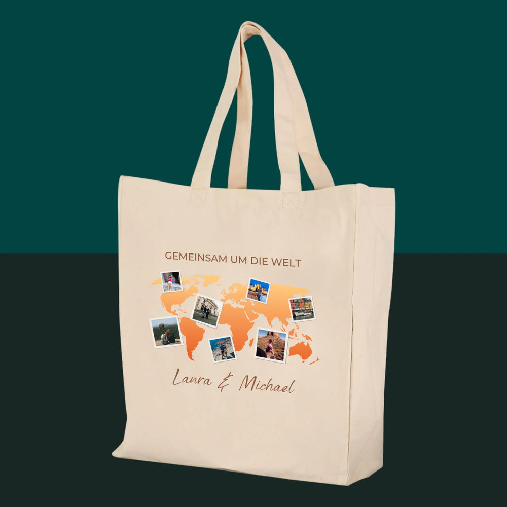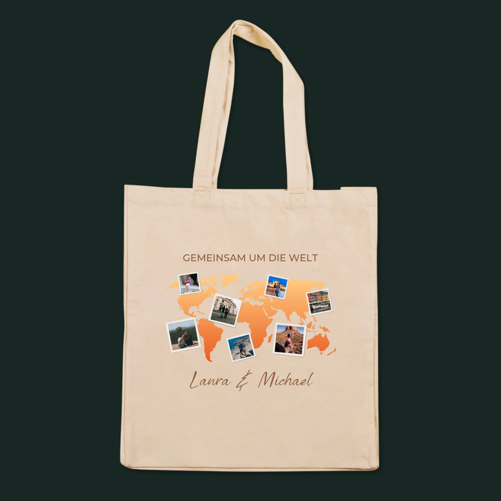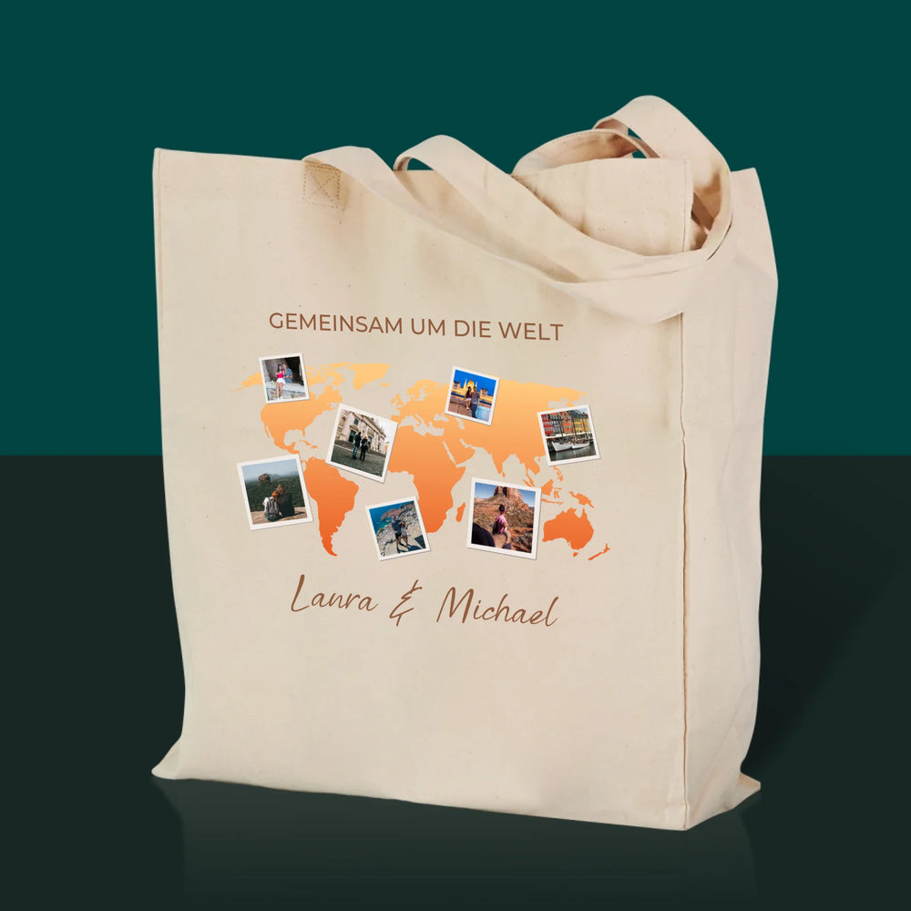 Fotocollage: Gemeinsam um die Welt – Canvastasche mit Aufdruck | DE - Stofftasche