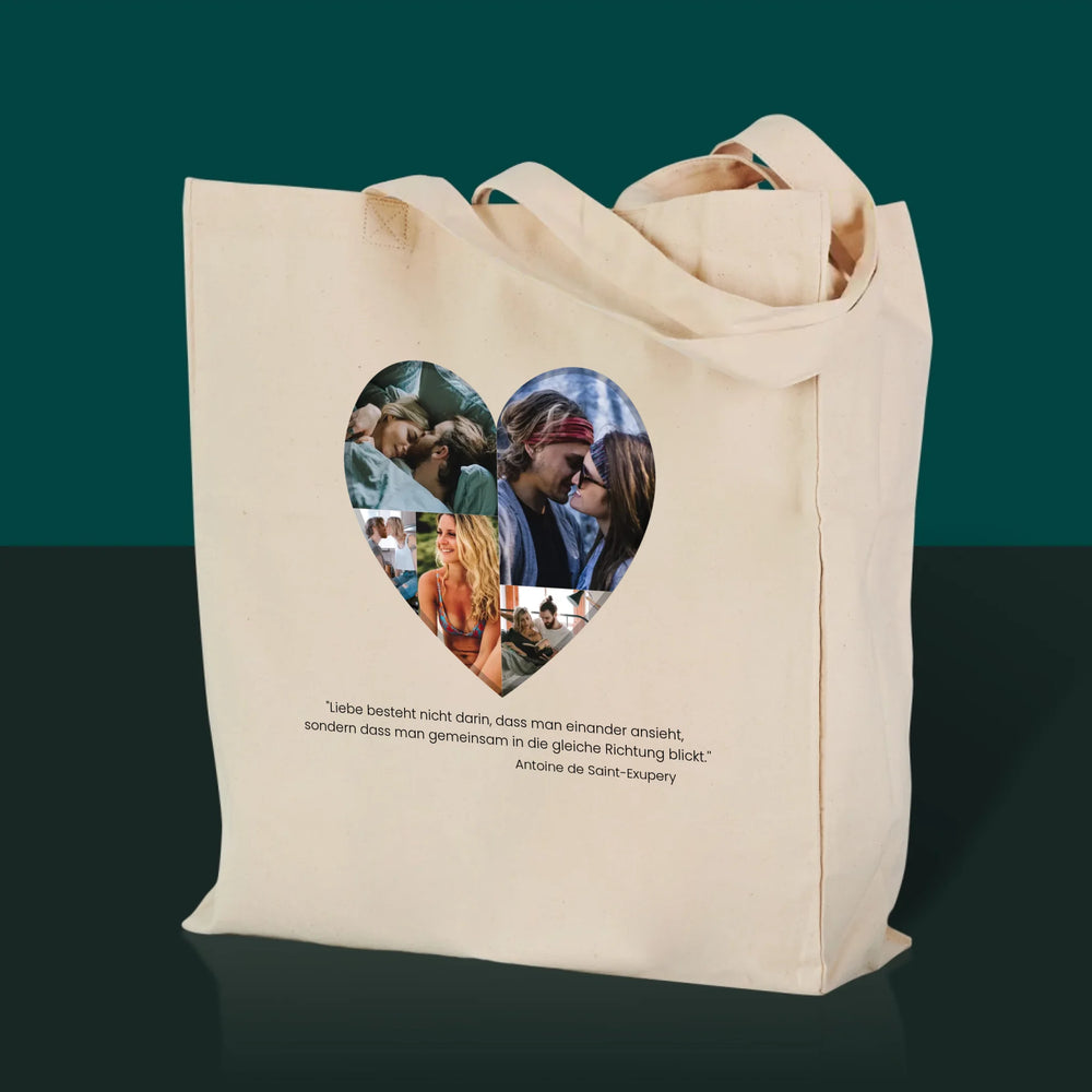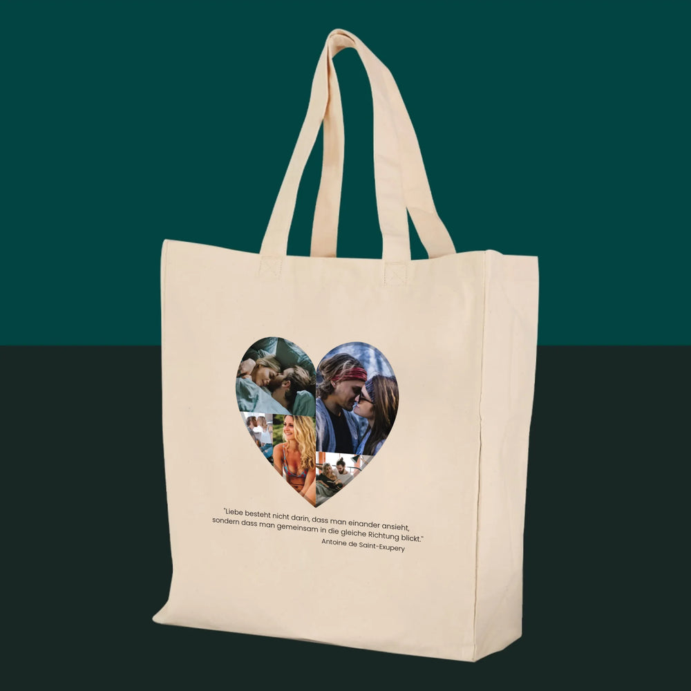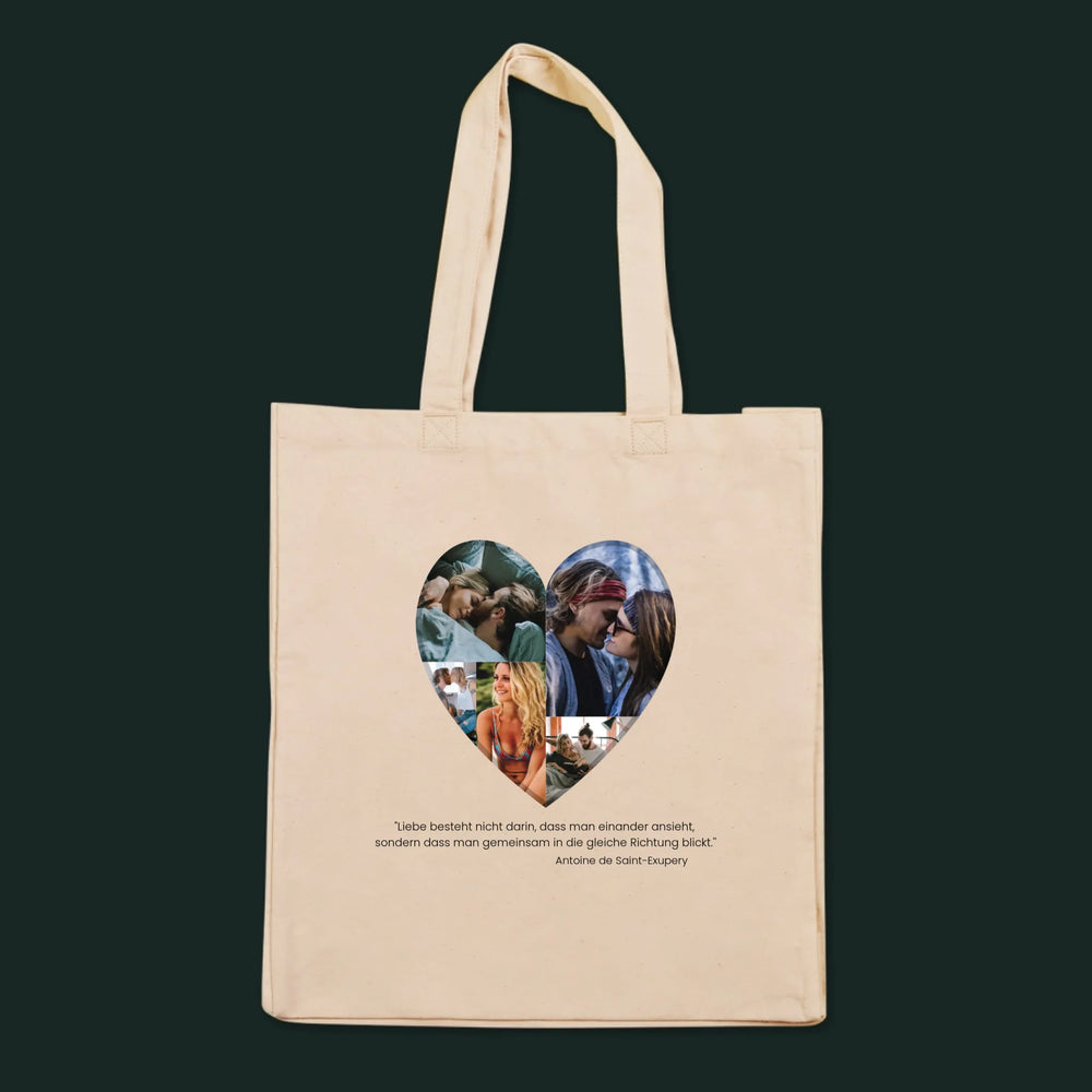 Fotocollage: Fotos im Herzen – Canvastasche mit Druck | DE - Stofftasche