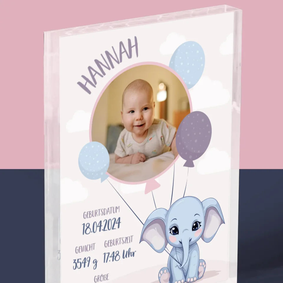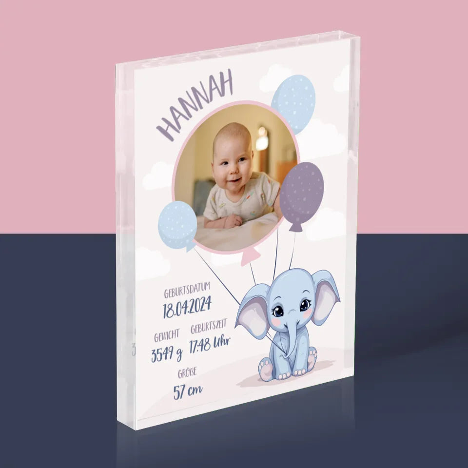 Geburtsdatum: Geburtsdatum Elefant - Acrylblock - Vertikal