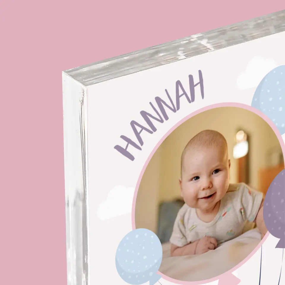 Druck auf einem 2 cm dicken, klaren Acrylblock (Plexiglas), individuell personalisiert.