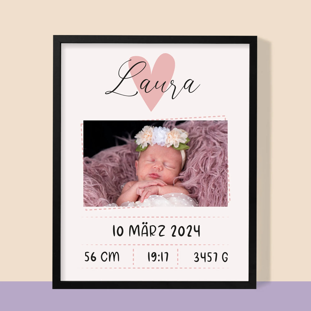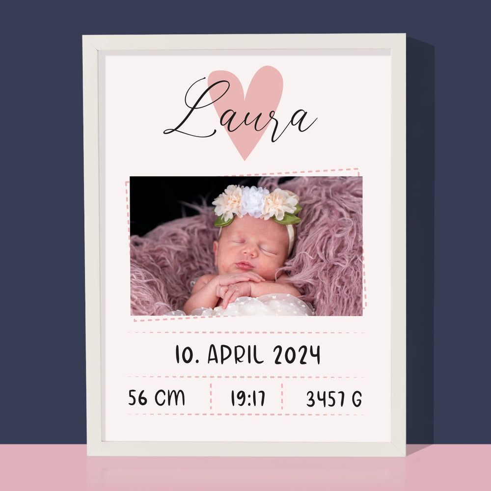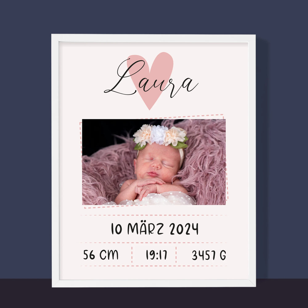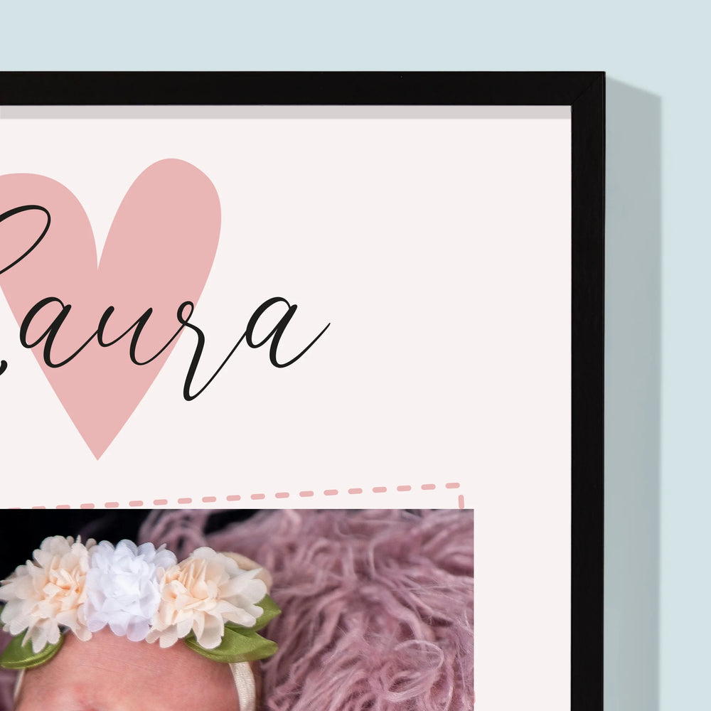 Geburtsdatum: Geburtsdatum Mädchen - Druck mit Rahmen - Vertikal