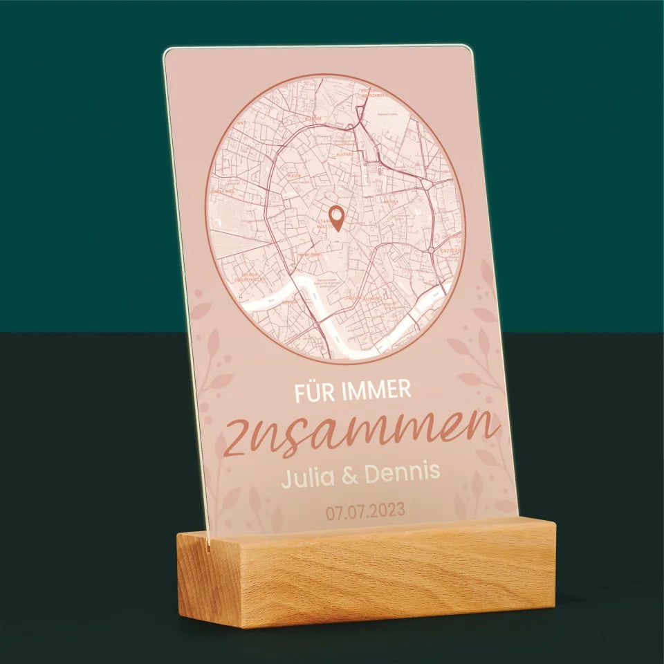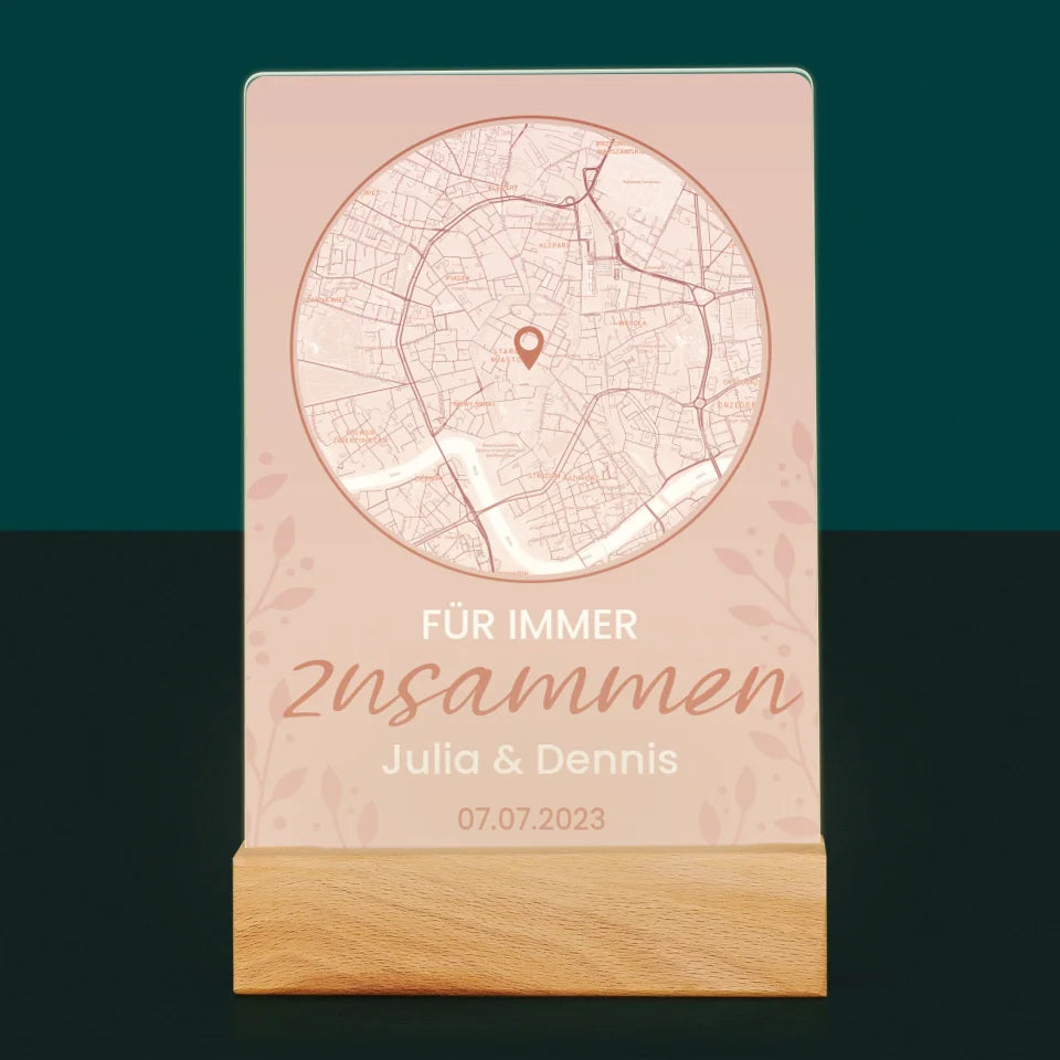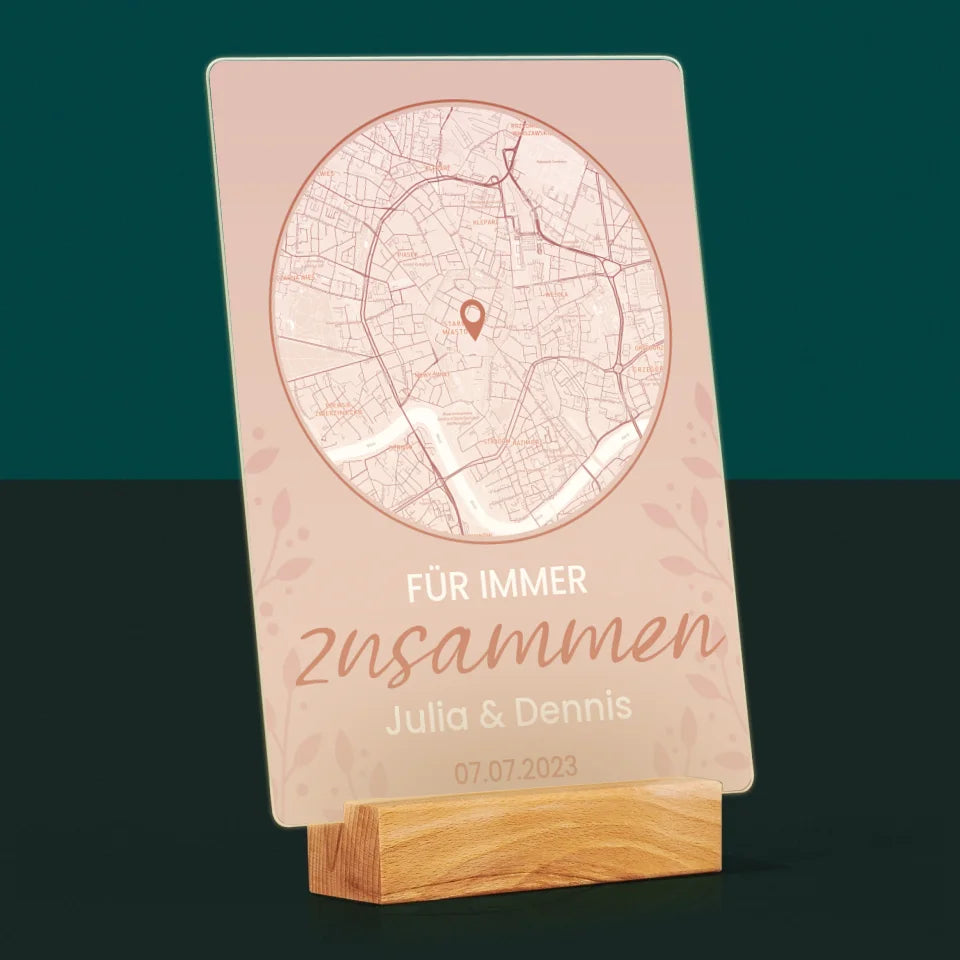 Ihr Standort: Ihr Standort: Für Immer Zusammen - Druck auf Acrylglas mit LED-Beleuchtung