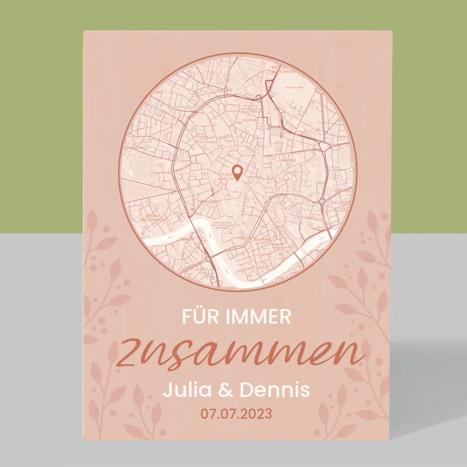 Ihr Standort: Ihr Standort: Für Immer Zusammen - Druck auf Holz - Vertikal