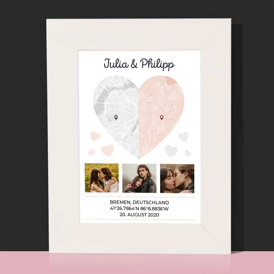 Ihr Standort: Zwei Herzhälften - Bilderrahmen - Vertikal