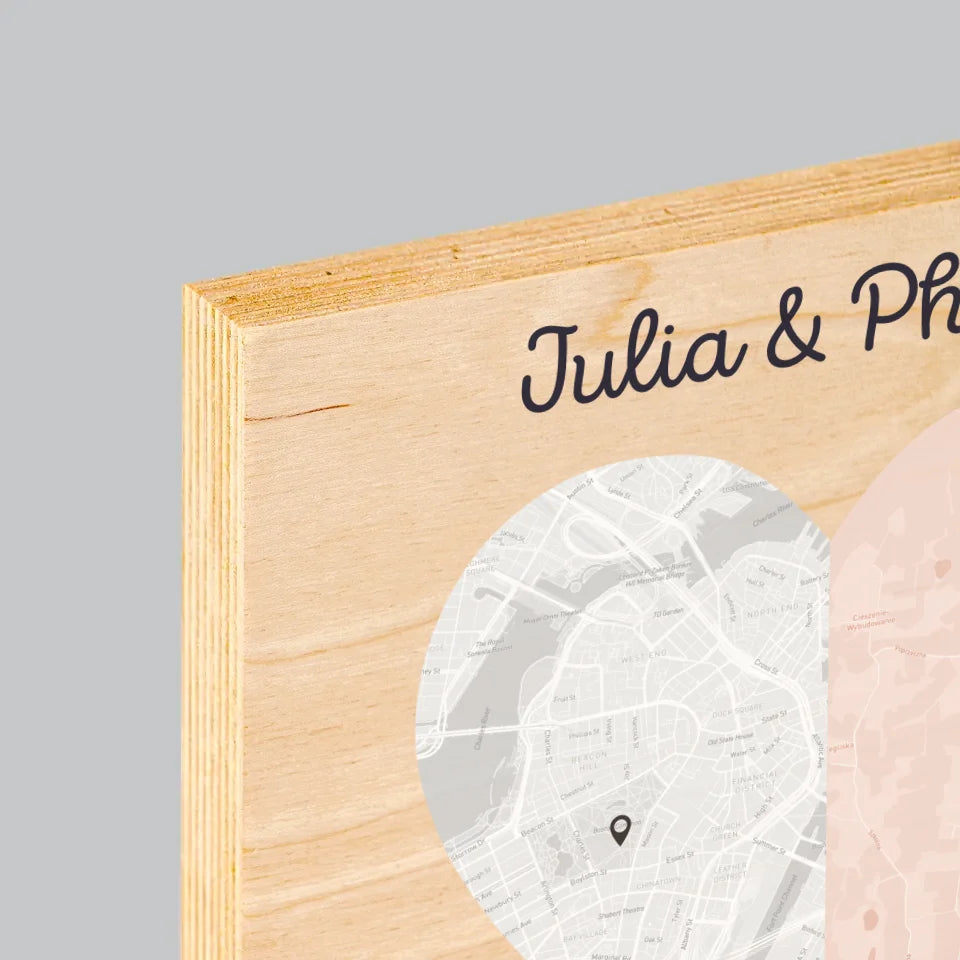 Druck auf einem 1,8 cm dicken Holzblock, individuell personalisiert.