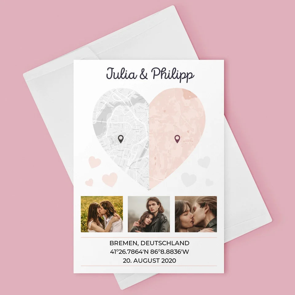• Personalisierte Glückwunschkarte für einen besonderen Anlass. Wählen Sie Ihre eigenen Fotos aus und erstellen Sie ein einzigartiges Geschenk!