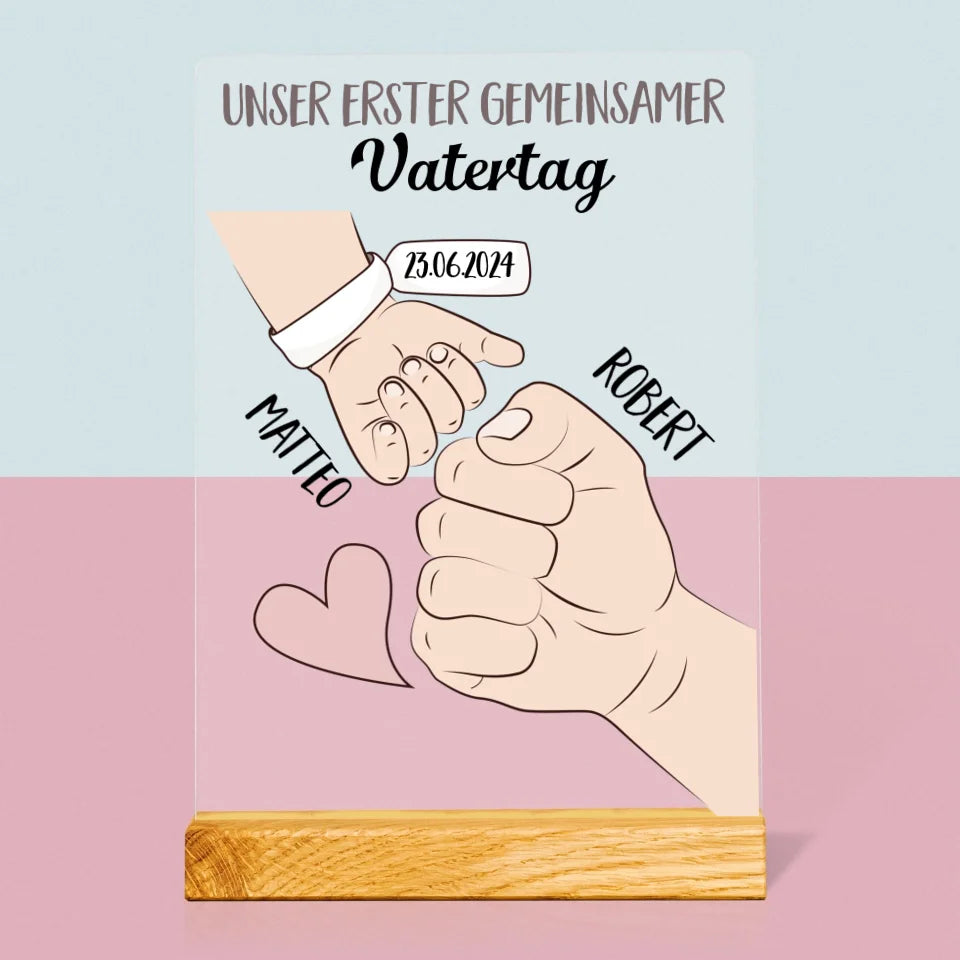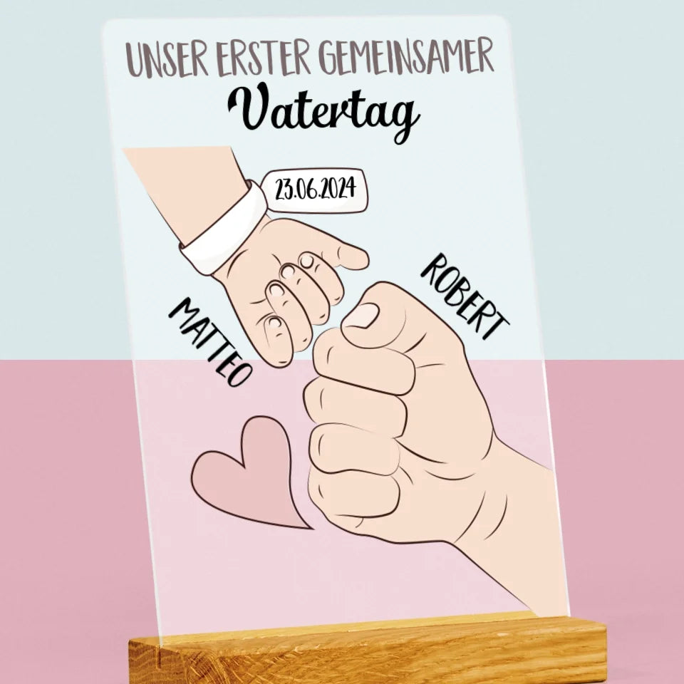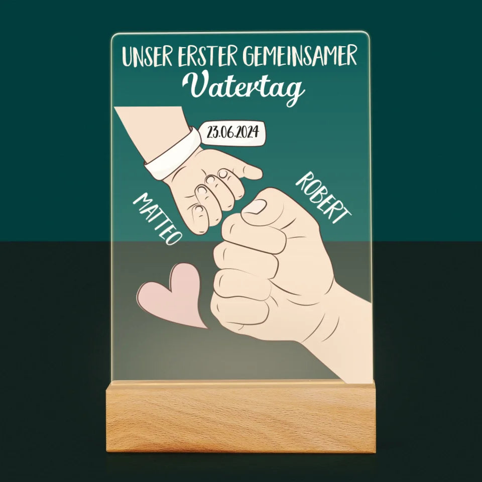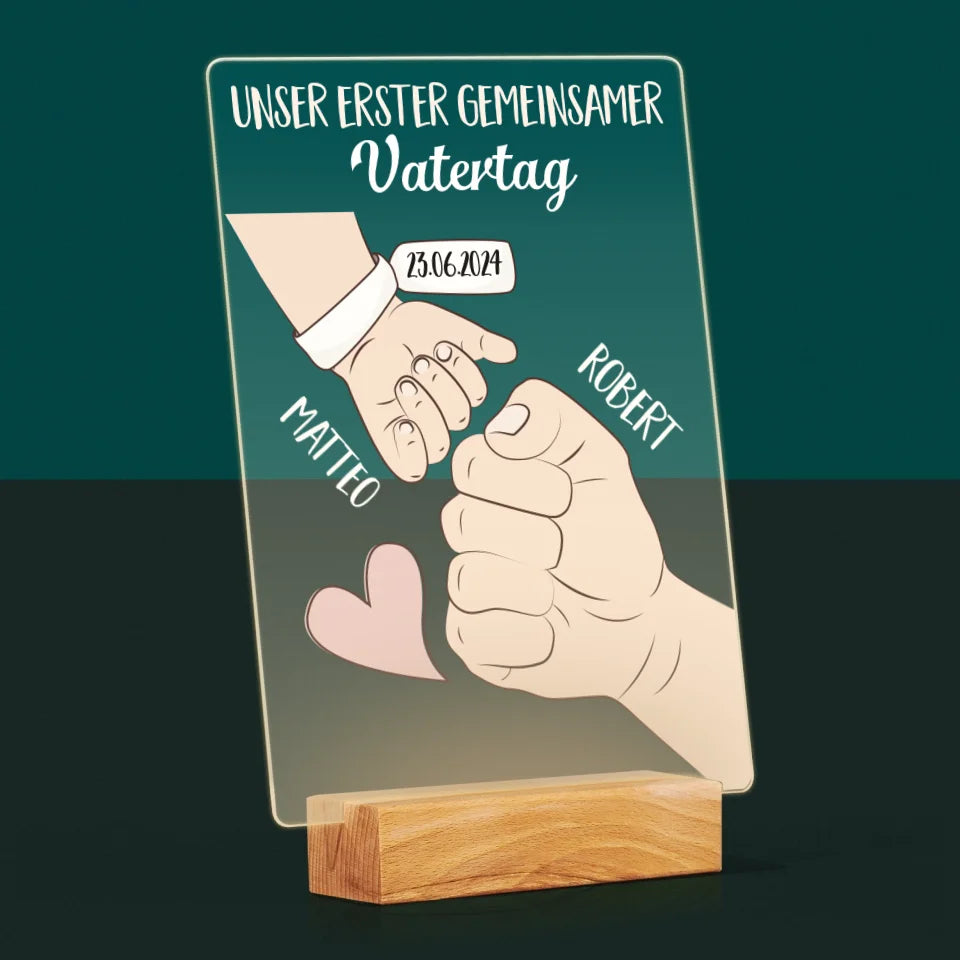 Name Und Unterschrift: Erster Gemeinsamer Vatertag - Druck auf Acrylglas mit LED-Beleuchtung