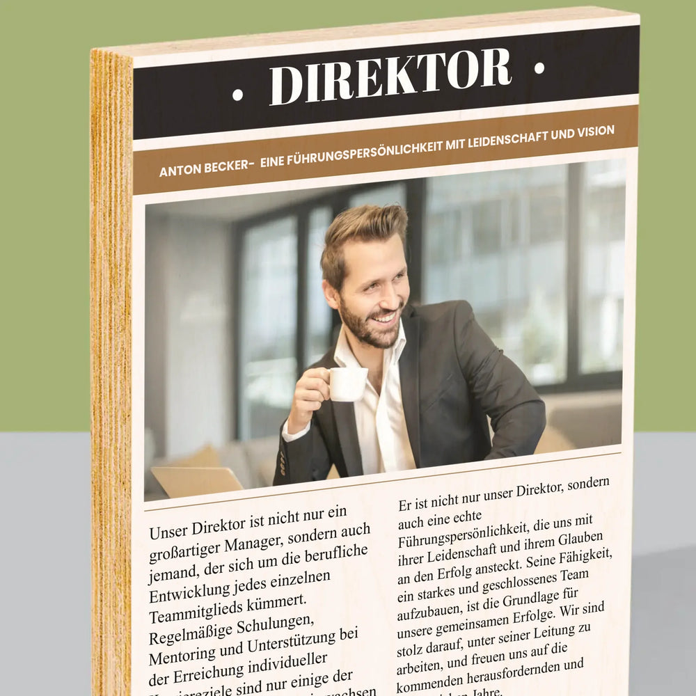 Magazin-Cover: Direktor - Druck auf Holz - Vertikal