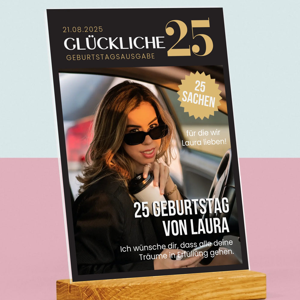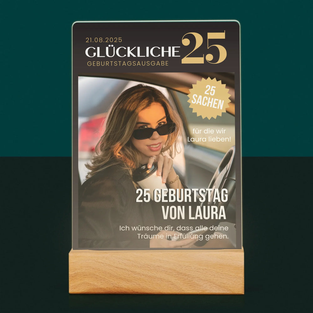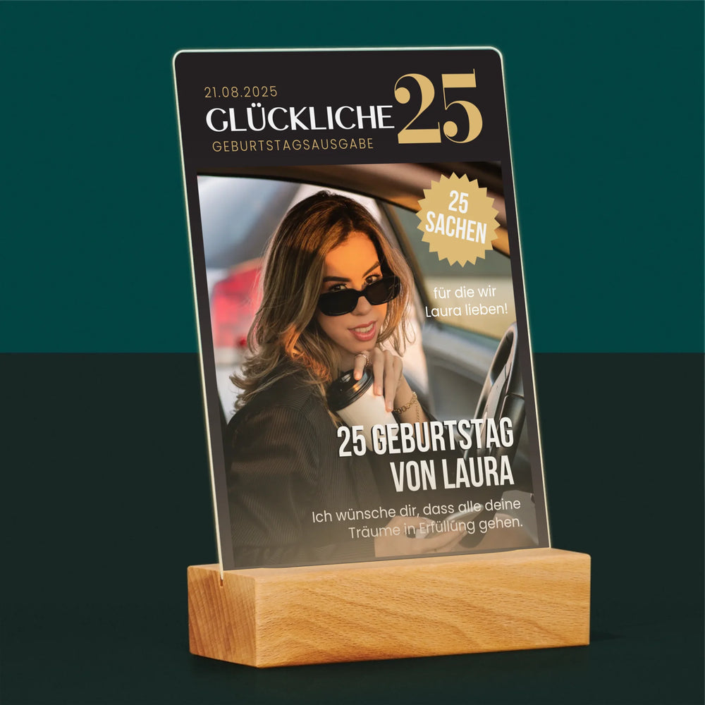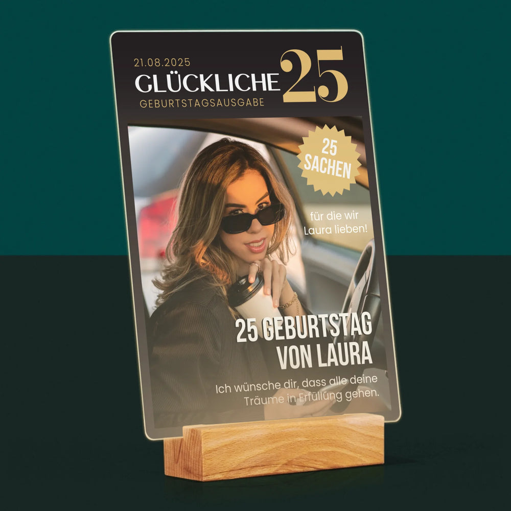 Magazin-Cover: Glückliche 25 - Druck auf Acrylglas mit LED-Beleuchtung