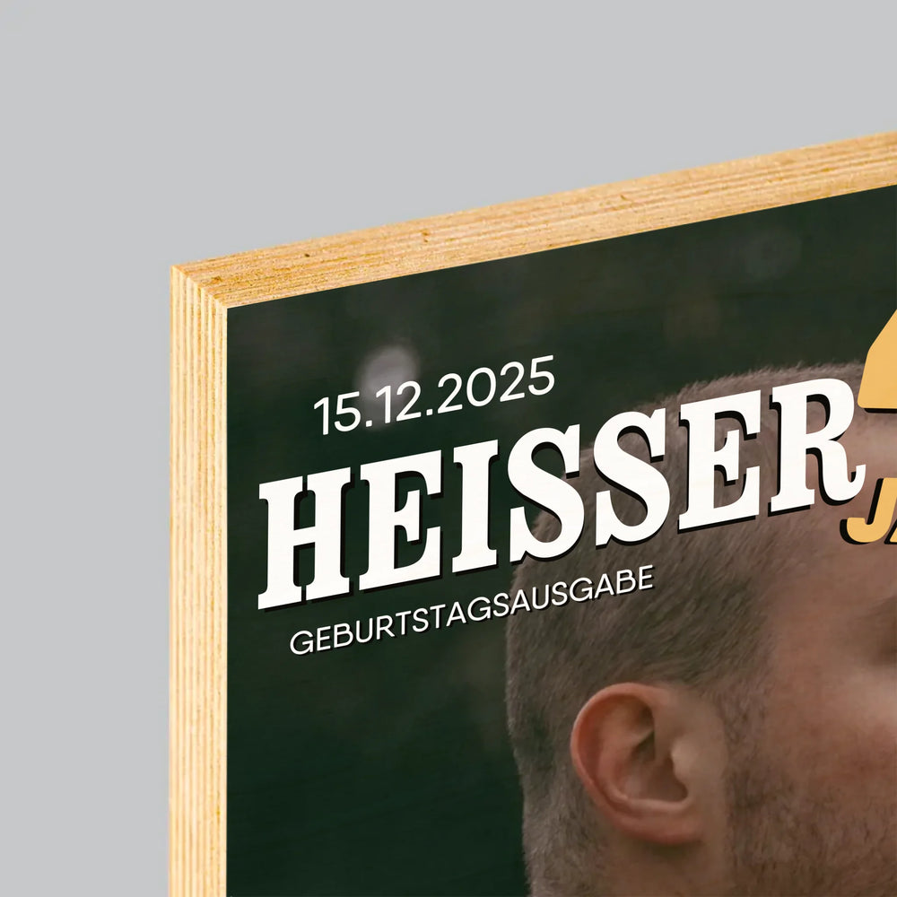 Magazin-Cover: Heißer 40-Jähriger - Druck auf Holz - Vertikal