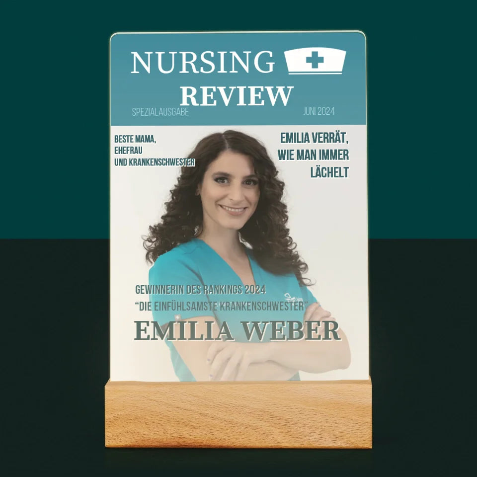 Magazin-Cover: Nursing Review - Druck auf Acrylglas mit LED-Beleuchtung