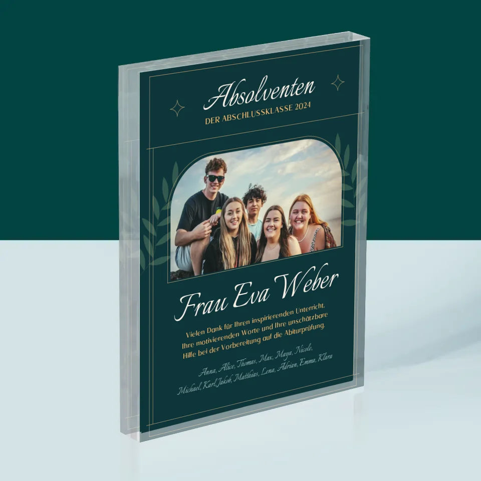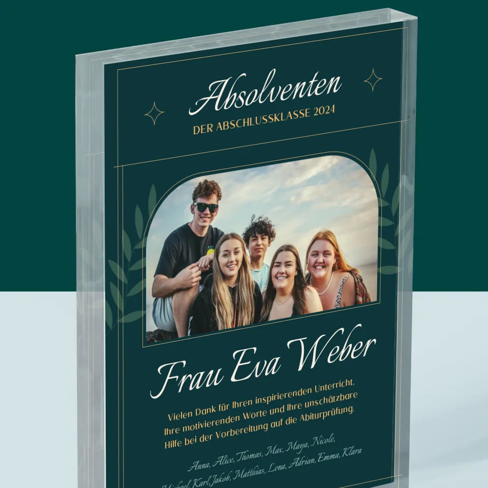 Monogramm: Lehrer Danke - Acrylblock - Vertikal
