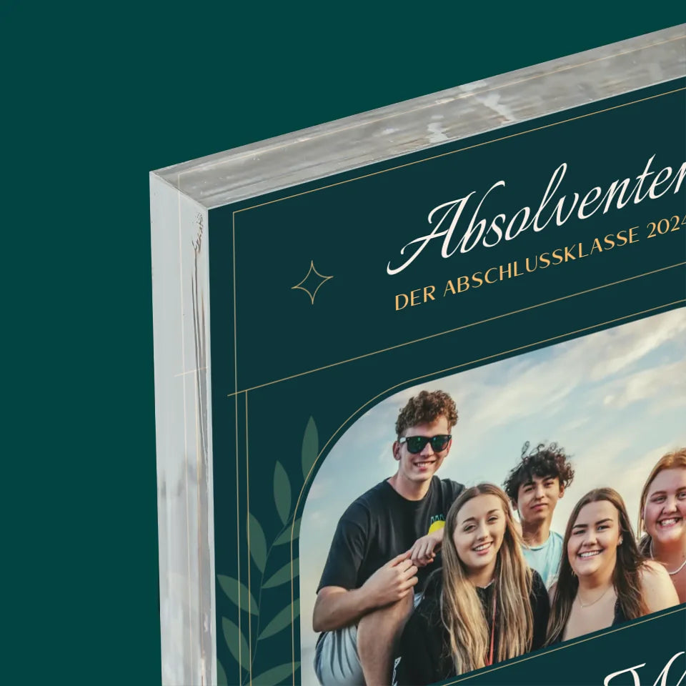 Druck auf einem 2 cm dicken, klaren Acrylblock (Plexiglas), individuell personalisiert.