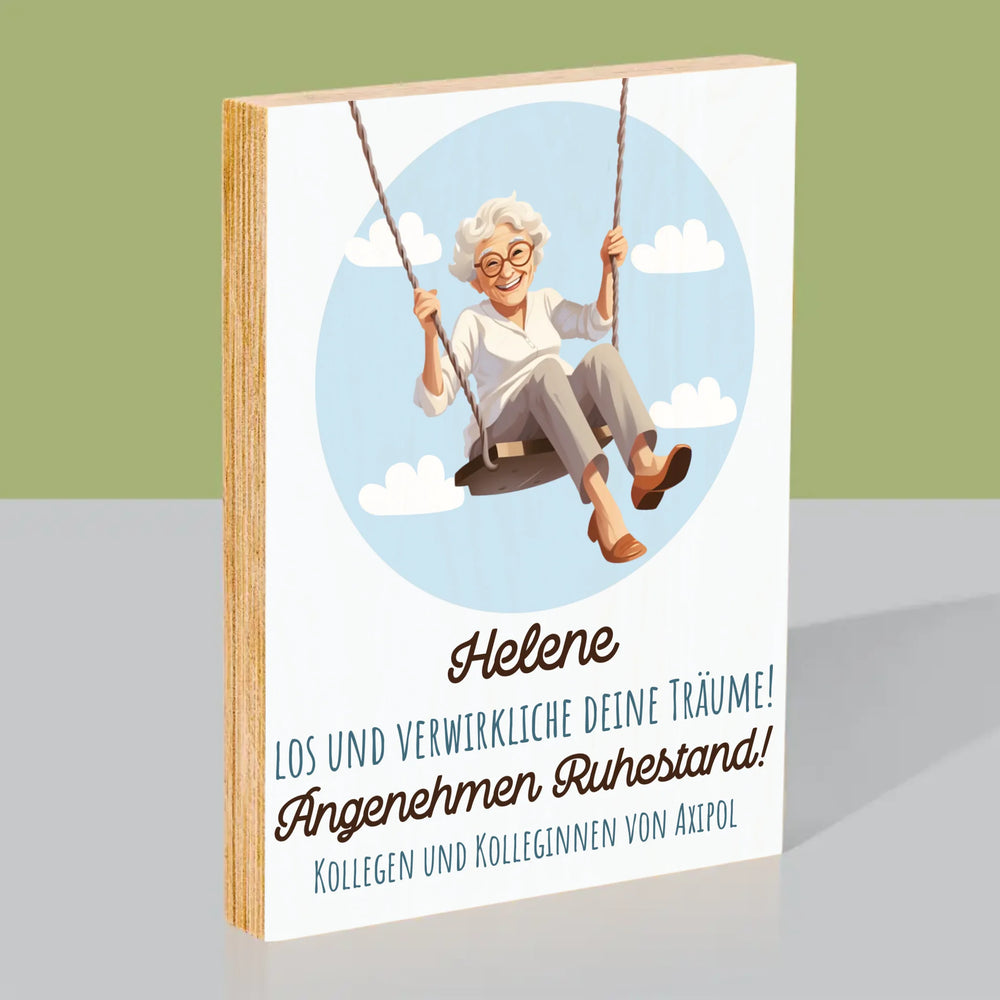 Druck auf einem 1,8 cm dicken Holzblock, individuell personalisiert.