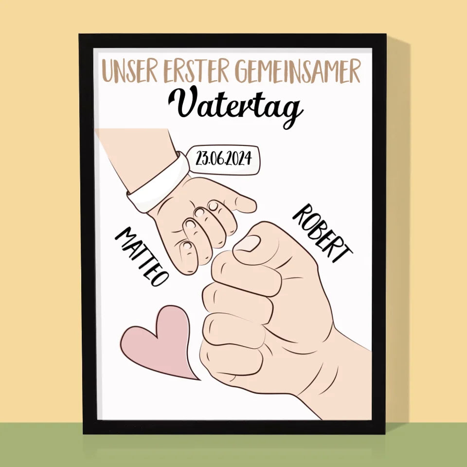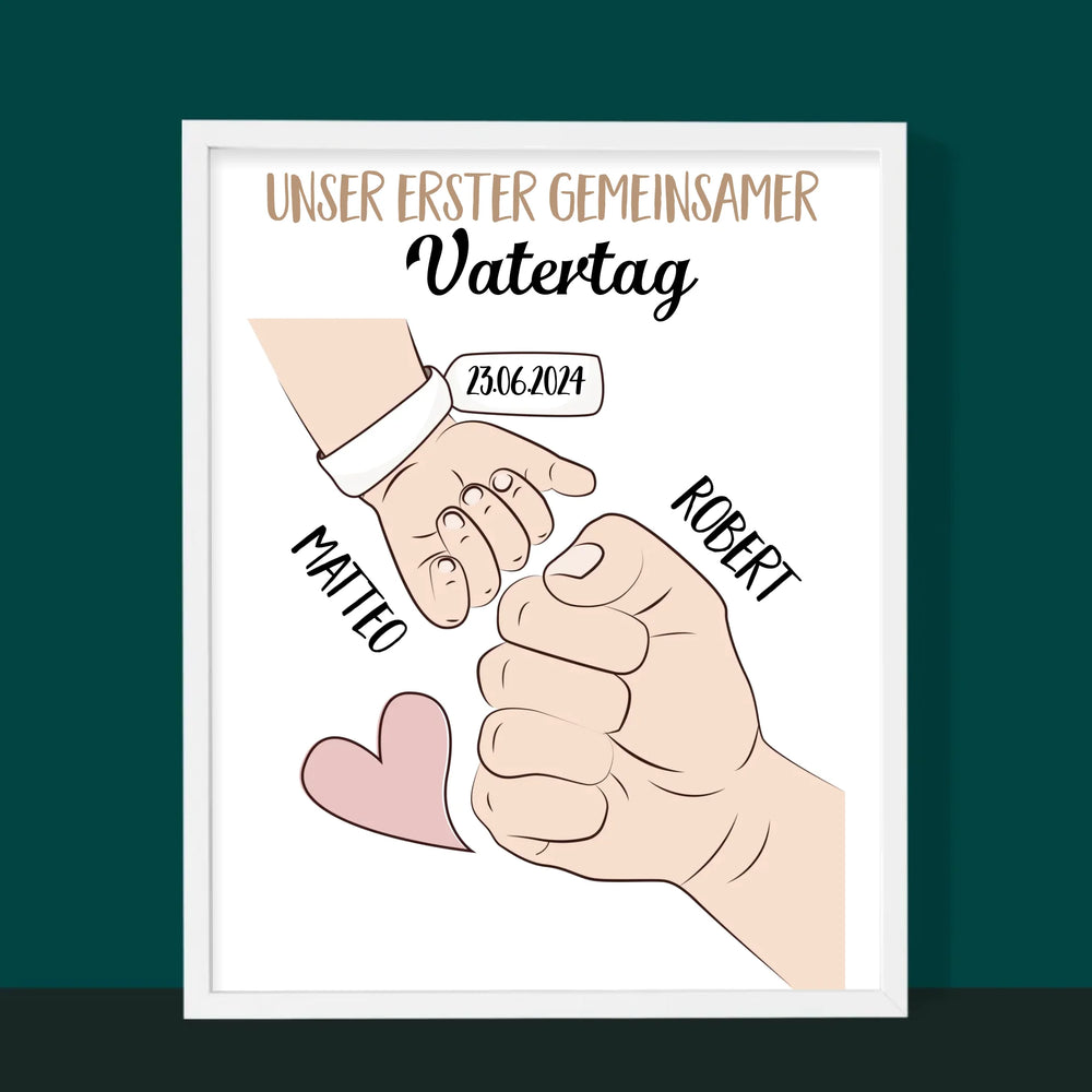 Name Und Unterschrift: Erster Gemeinsamer Vatertag - Druck mit Rahmen - Vertikal