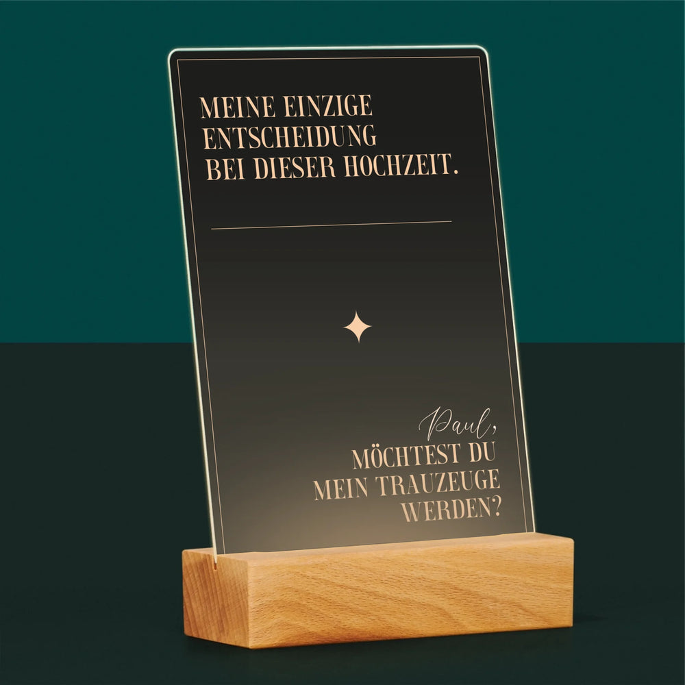 Druck auf einem 2 cm dicken, klaren Acrylglas (Plexiglas), individuell personalisiert.