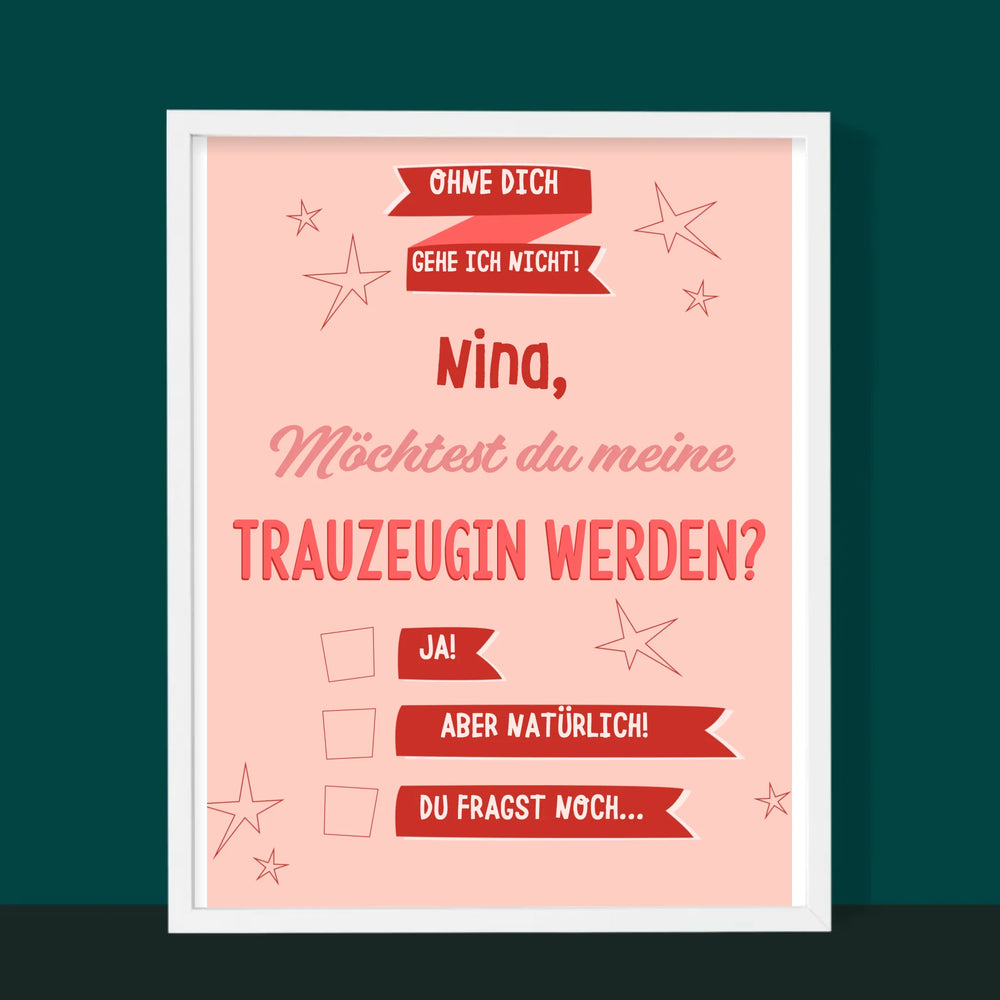 Name Und Unterschrift: Ohne Dich Gehe Ich Nicht - Druck mit Rahmen - Vertikal