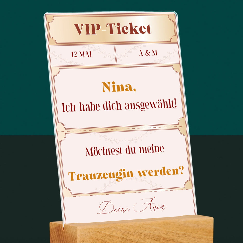 Name Und Unterschrift: Vip-Ticket- Trauzeugin - Druck auf Acrylglas mit LED-Beleuchtung