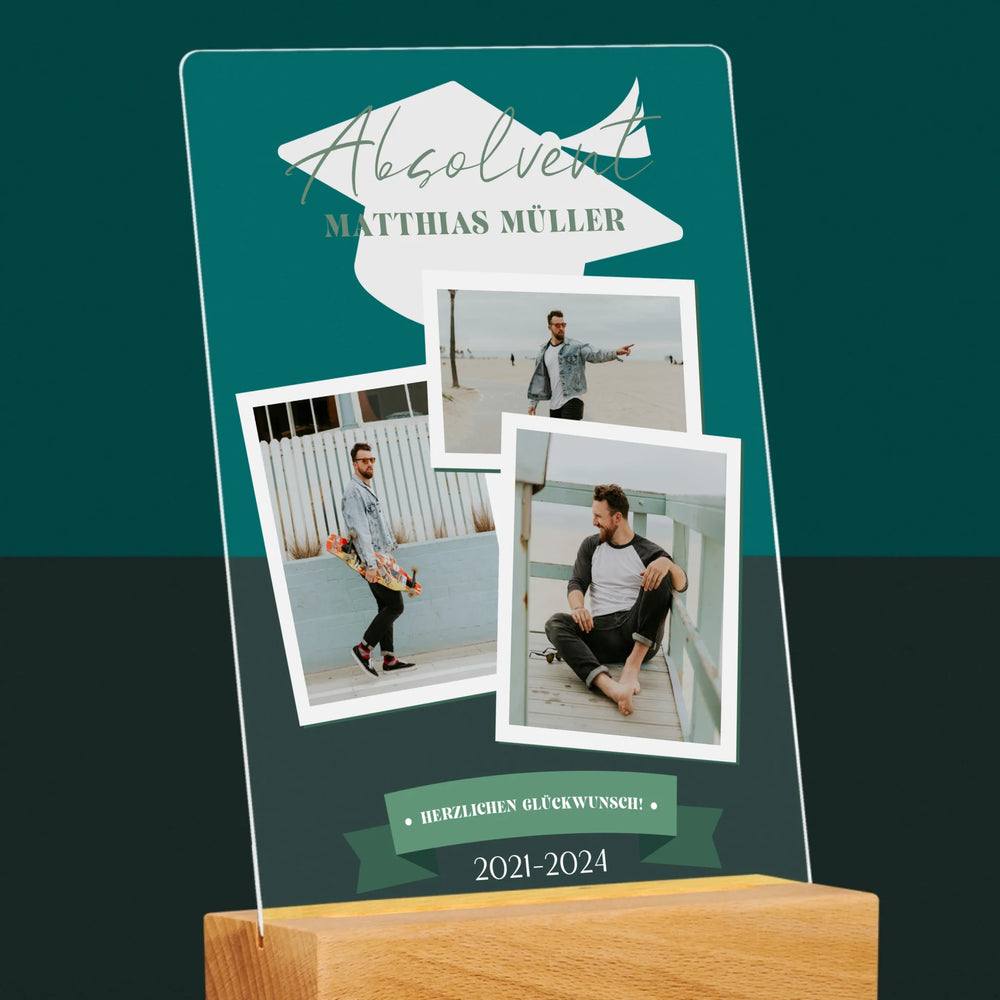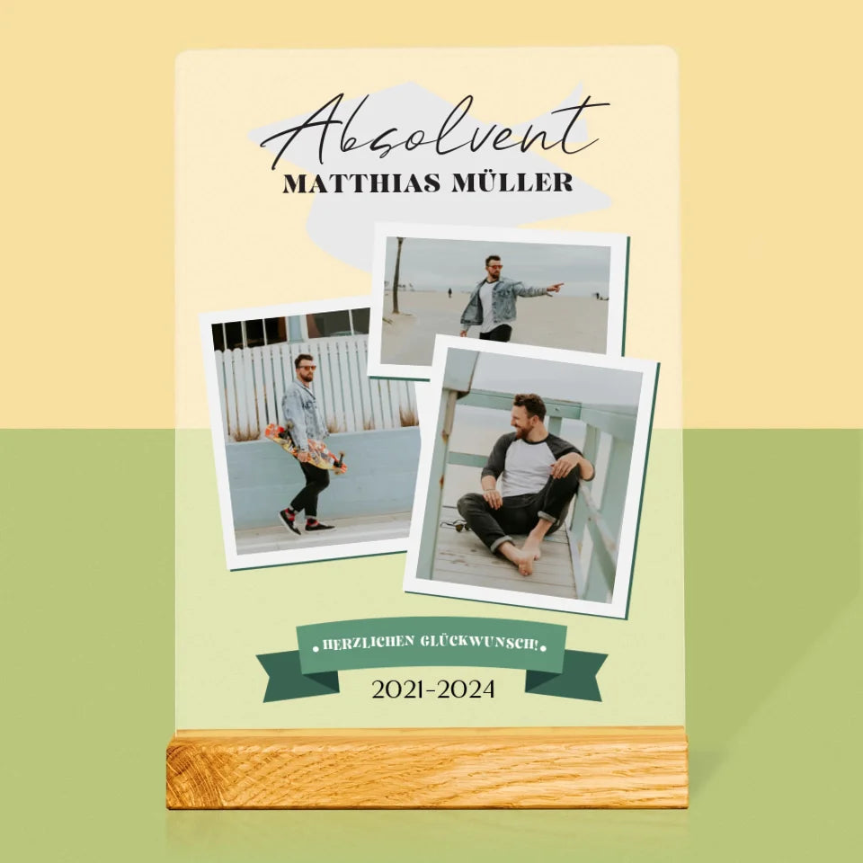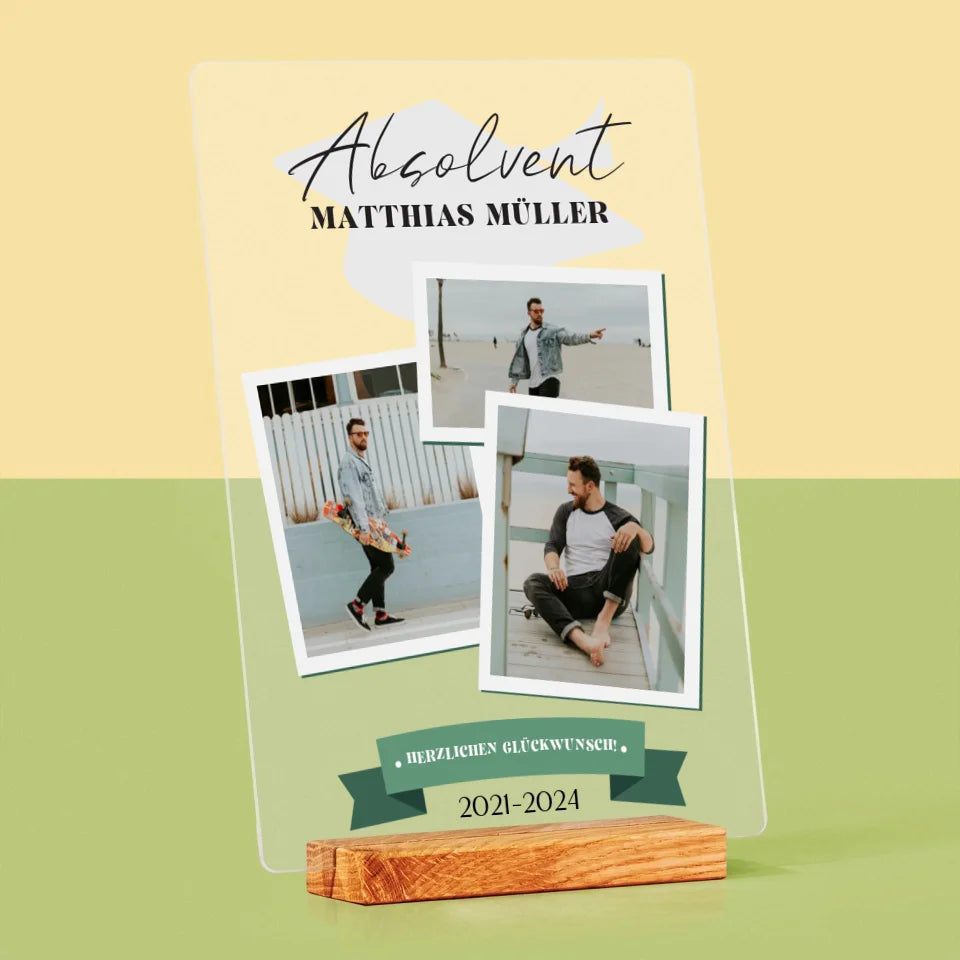 Druck auf einem 2 cm dicken, klaren Acrylglas (Plexiglas), individuell personalisiert.