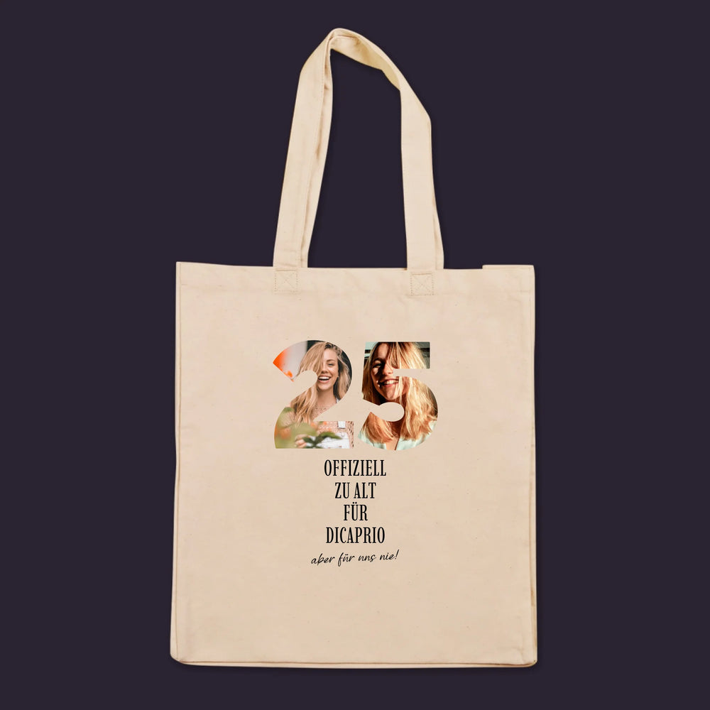 Wort aus Bildern: Zu alt für DiCaprio – bedruckte Canvas-Tasche | DE - Stofftasche