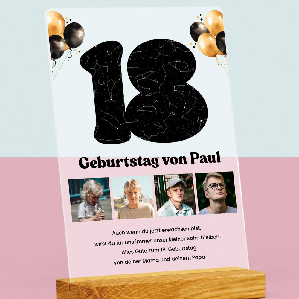 Sternkarte: 18. Geburtstag Des Stars-Mit Widmung - Druck auf Acrylglas mit LED-Beleuchtung