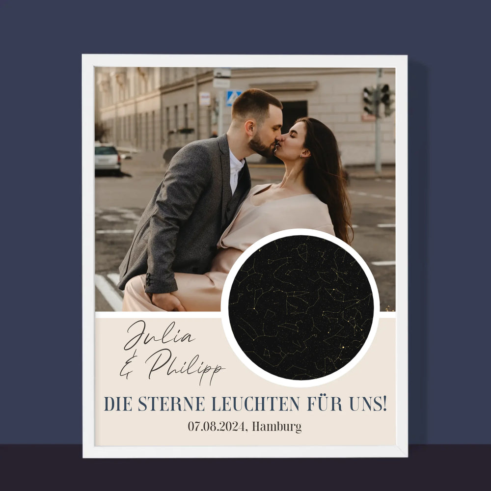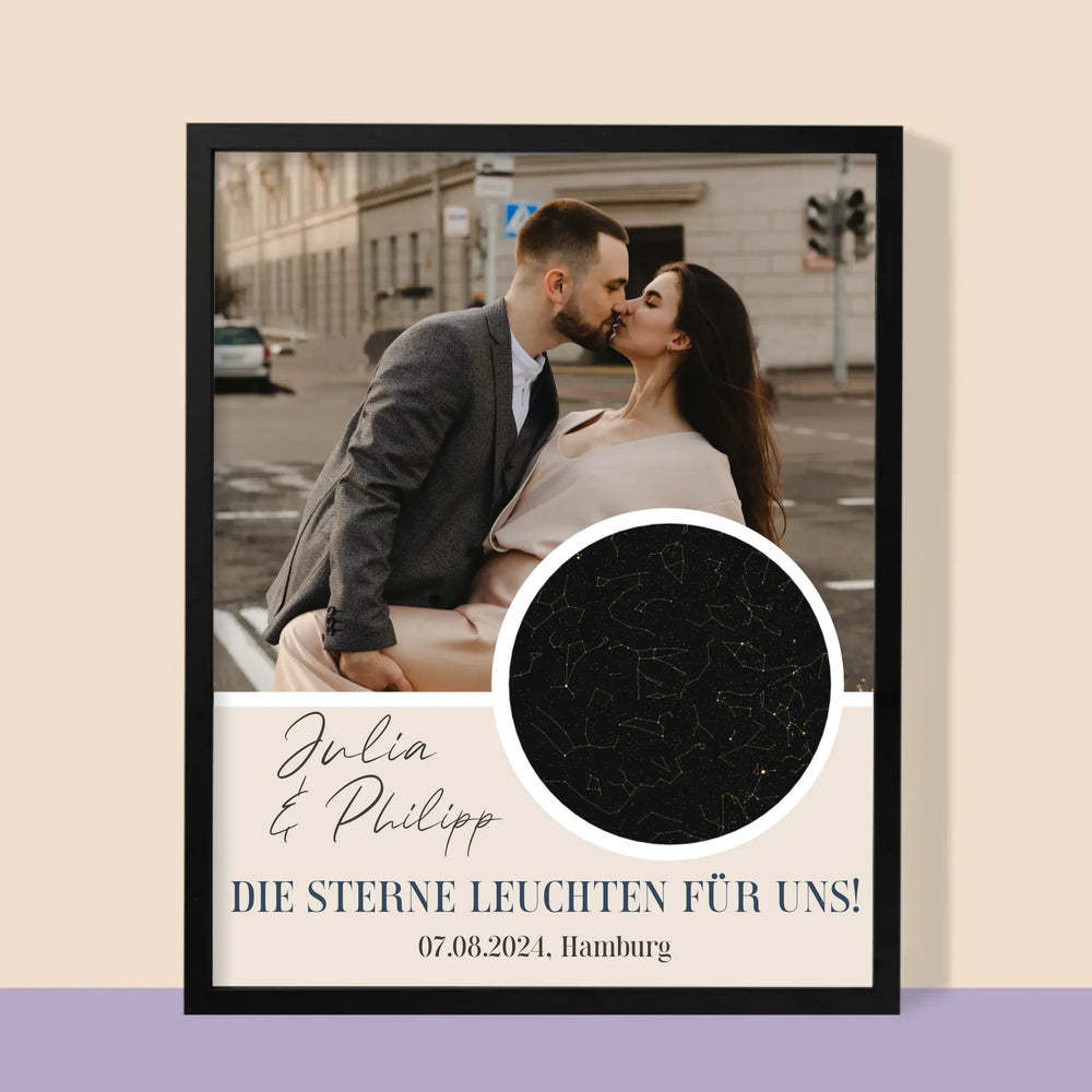 Sternkarte: Die Sterne Leuchten Für Uns - Druck mit Rahmen - Vertikal