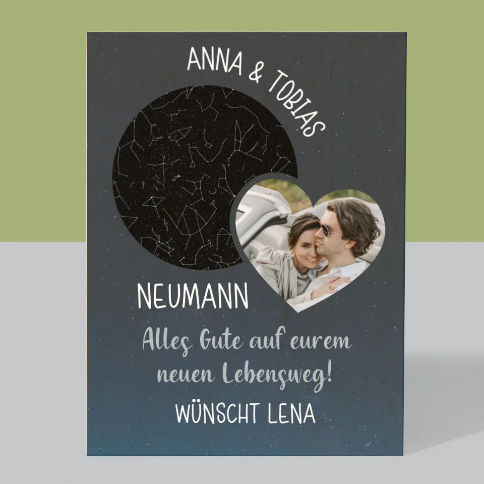 Sternkarte: Neuer Lebensweg Hochzeit - Druck Auf Holz