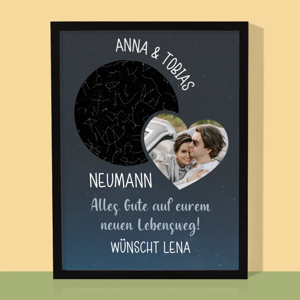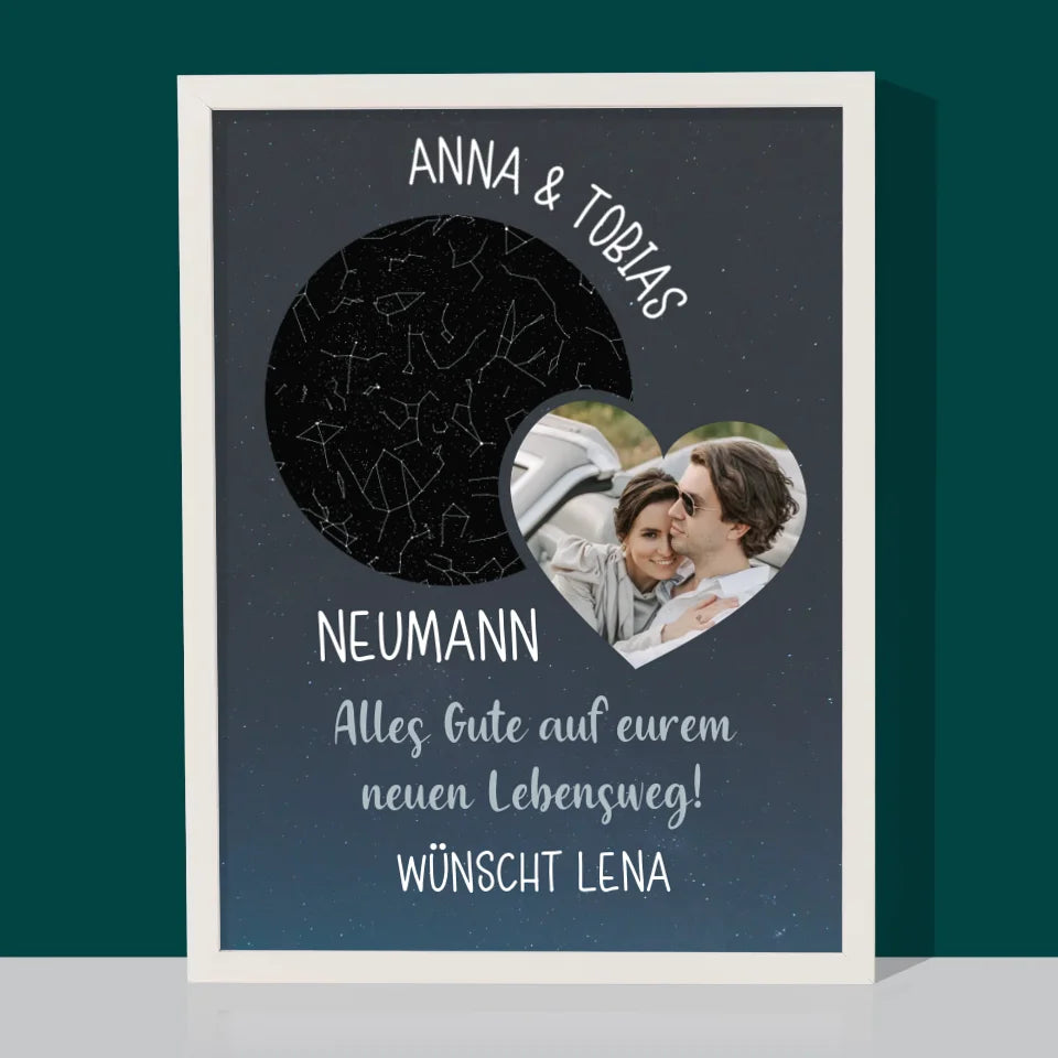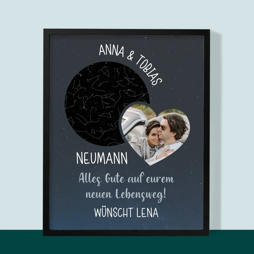 Sternkarte: Neuer Lebensweg Hochzeit - Druck mit Rahmen - Vertikal