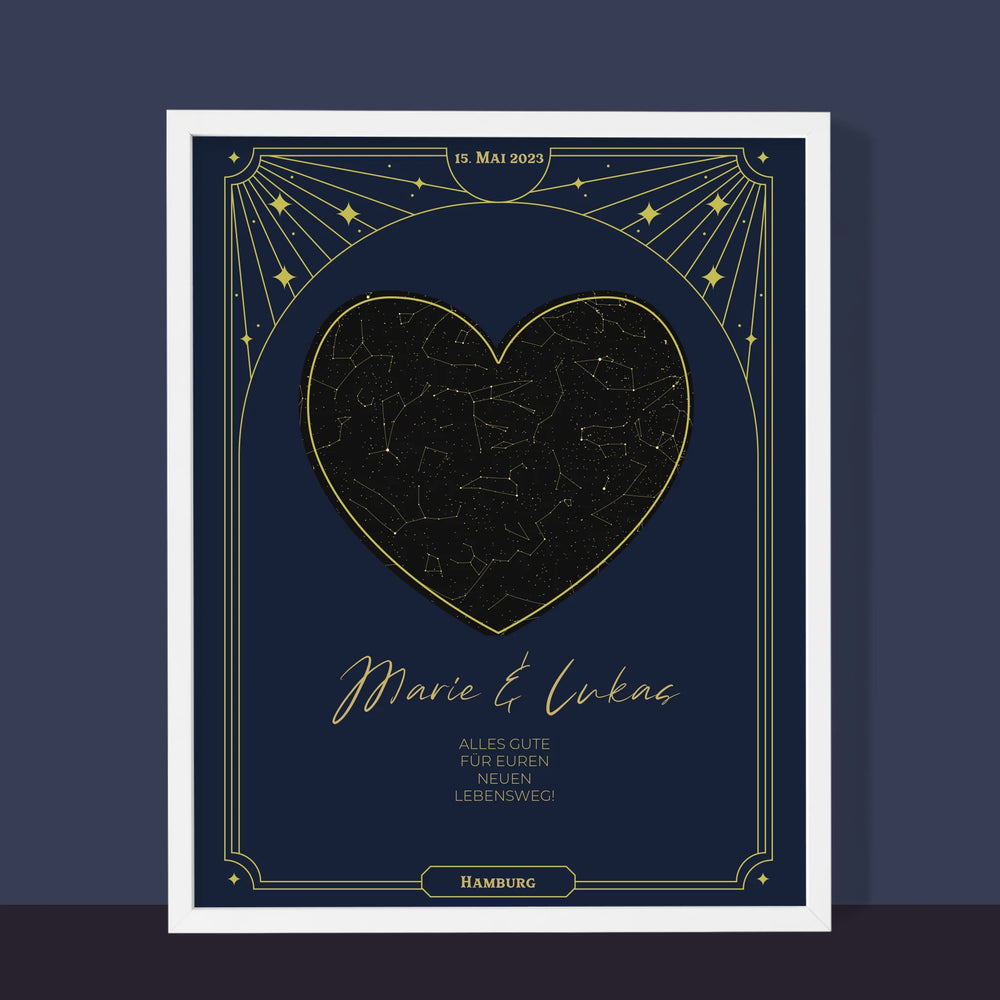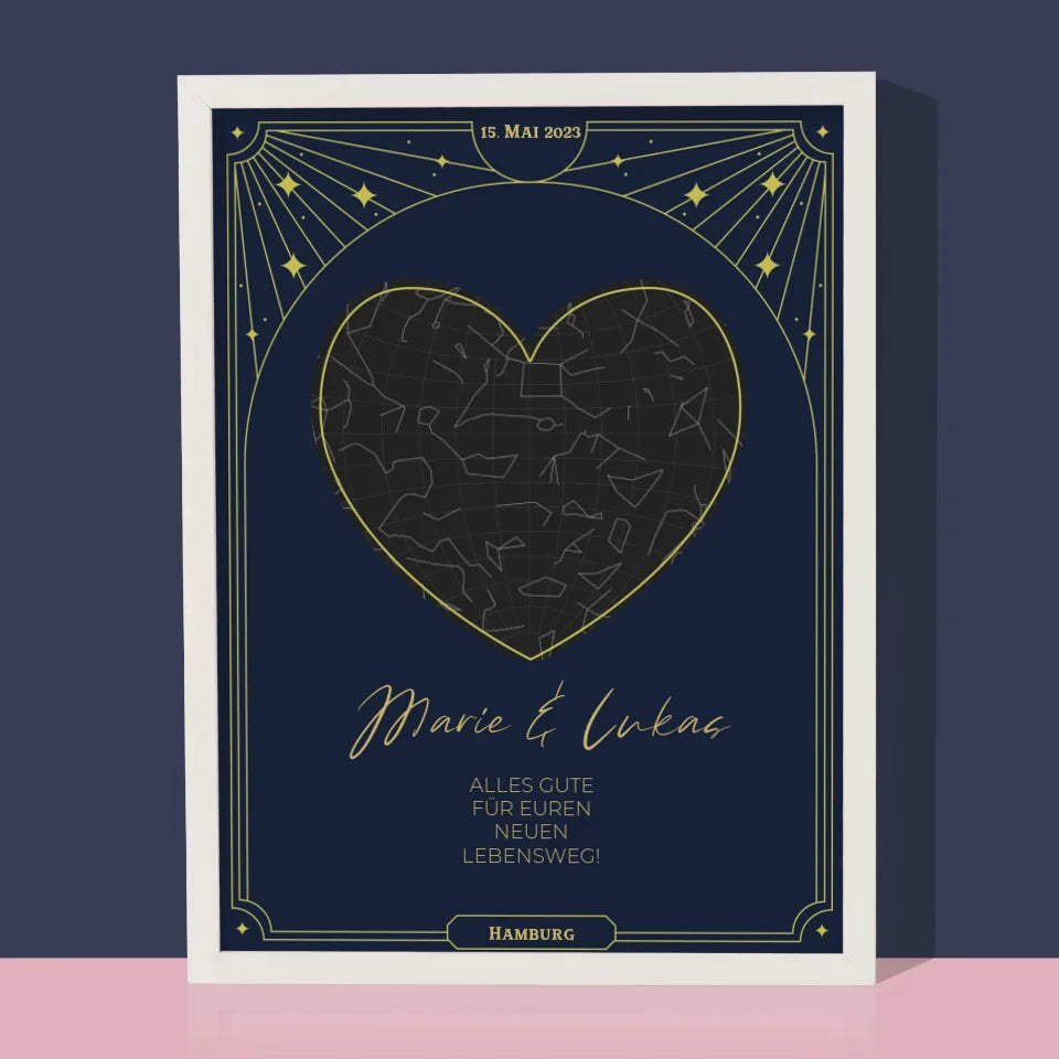 Sternkarte: Sternkarte: Neuer Lebensweg - Druck mit Rahmen - Vertikal