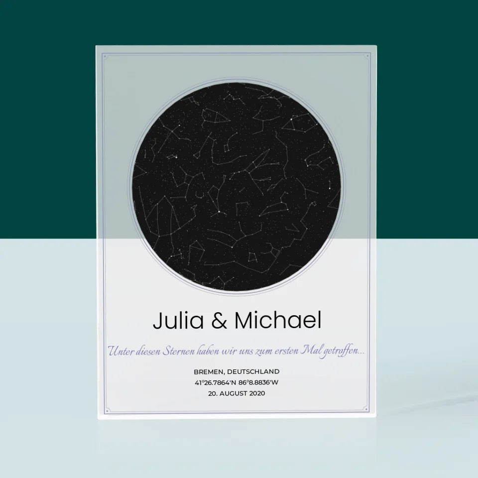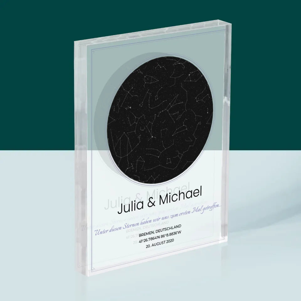 Sternkarte: Sternkarte: Unter Den Sternen - Acrylblock - Vertikal