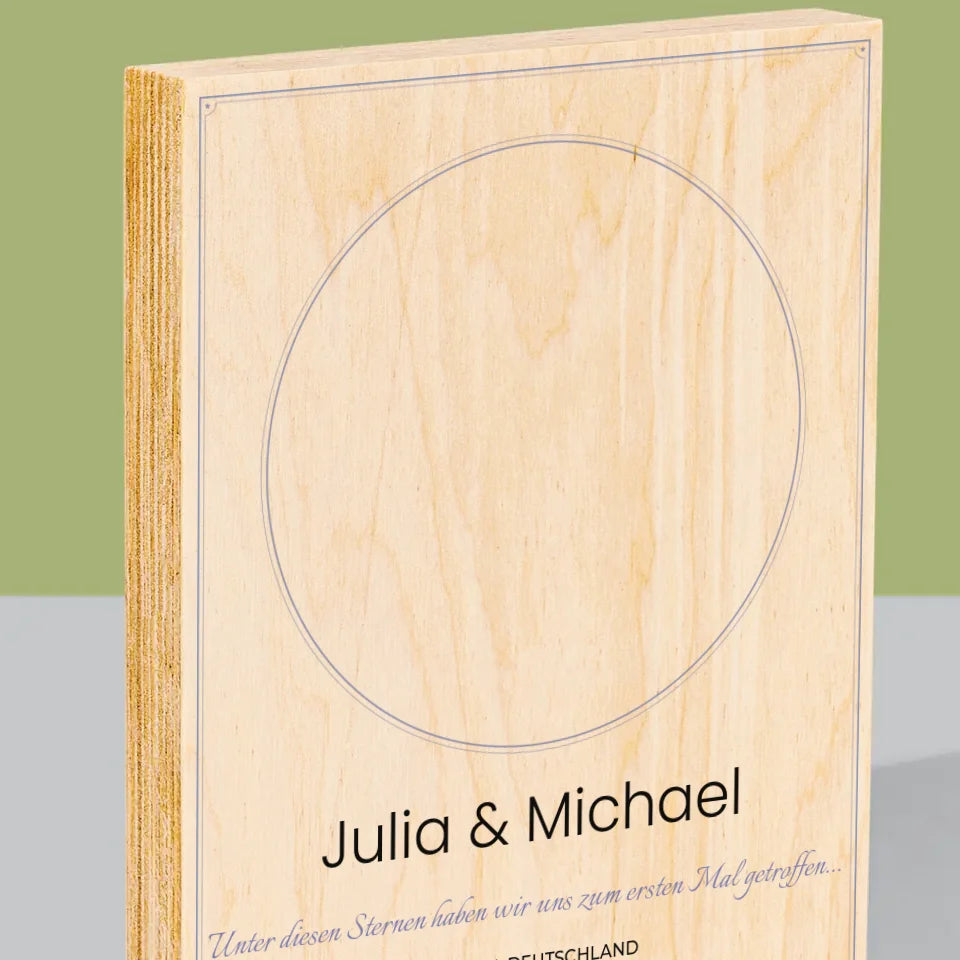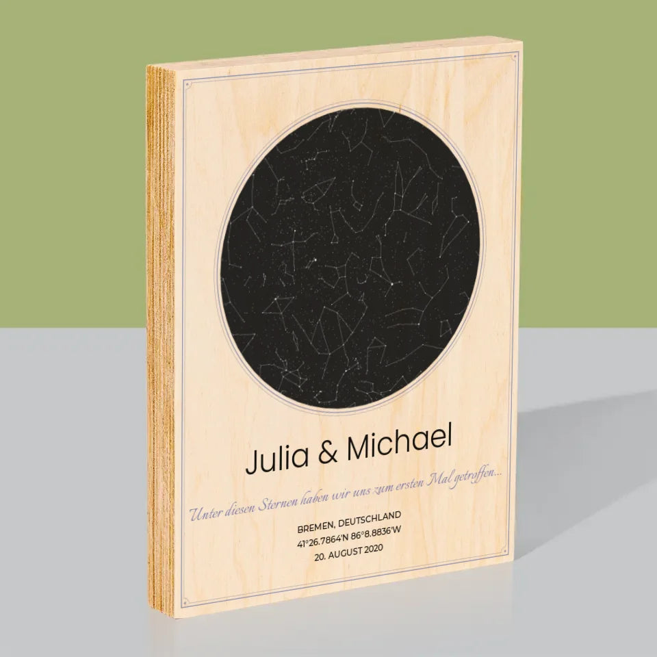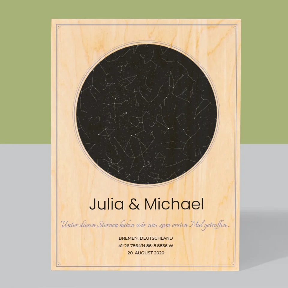 Sternkarte: Sternkarte: Unter Den Sternen - Druck auf Holz - Vertikal