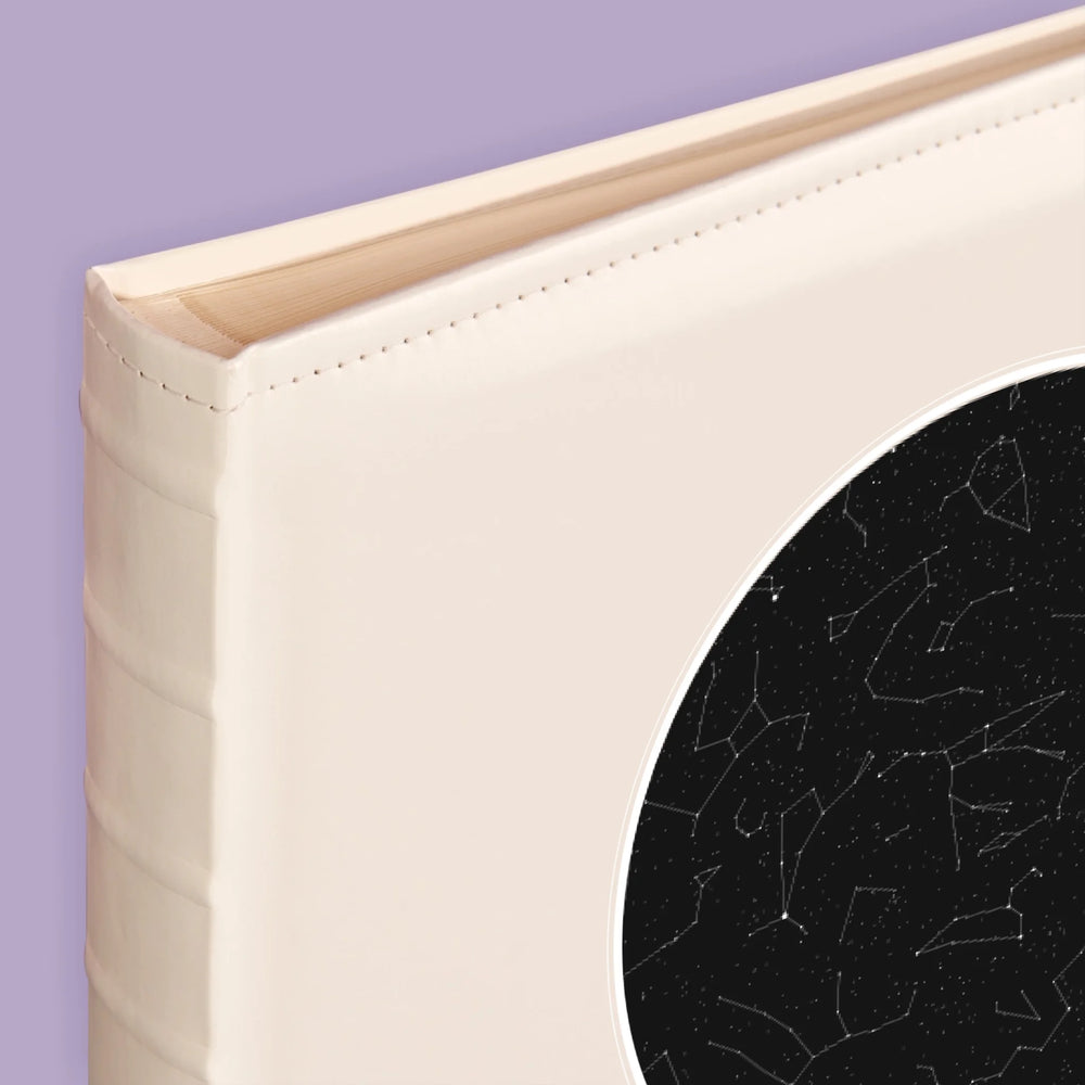 Einband aus Eco-Leder, leicht glänzend, in Weiß.