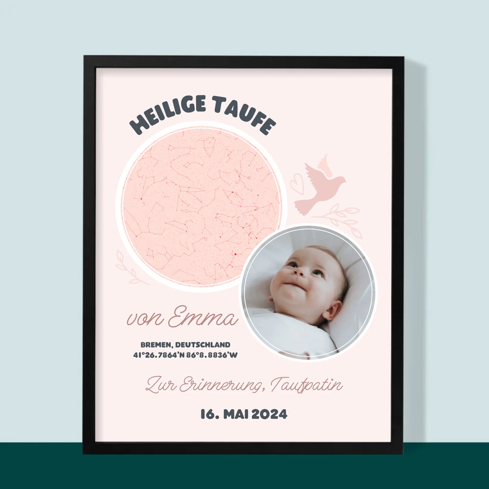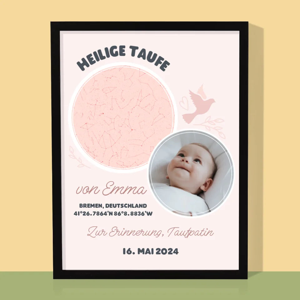 Das Poster wird auf hochwertigem Fotopapier gedruckt, das in einem Wechselrahmen gefasst wird.