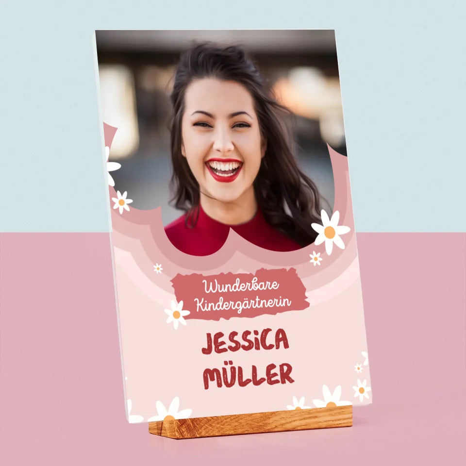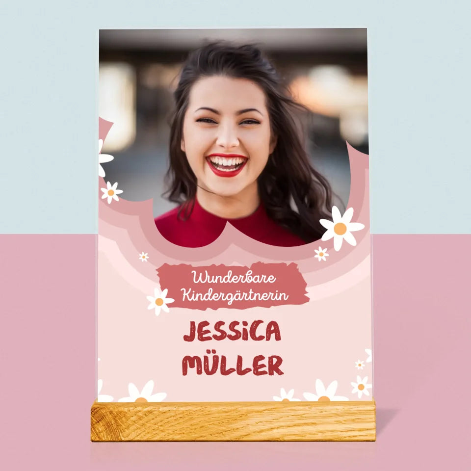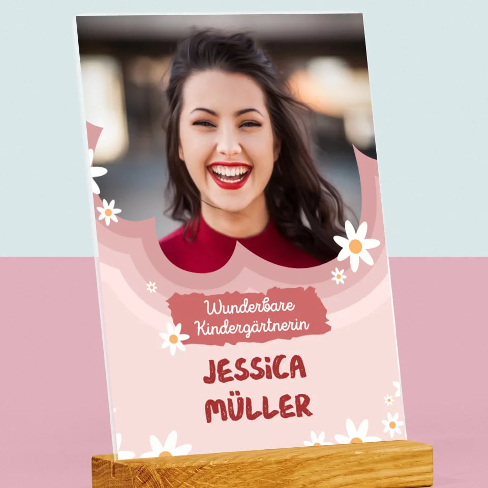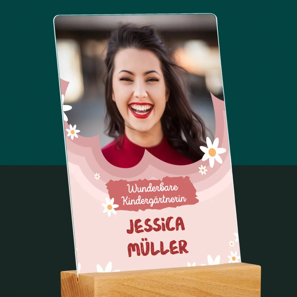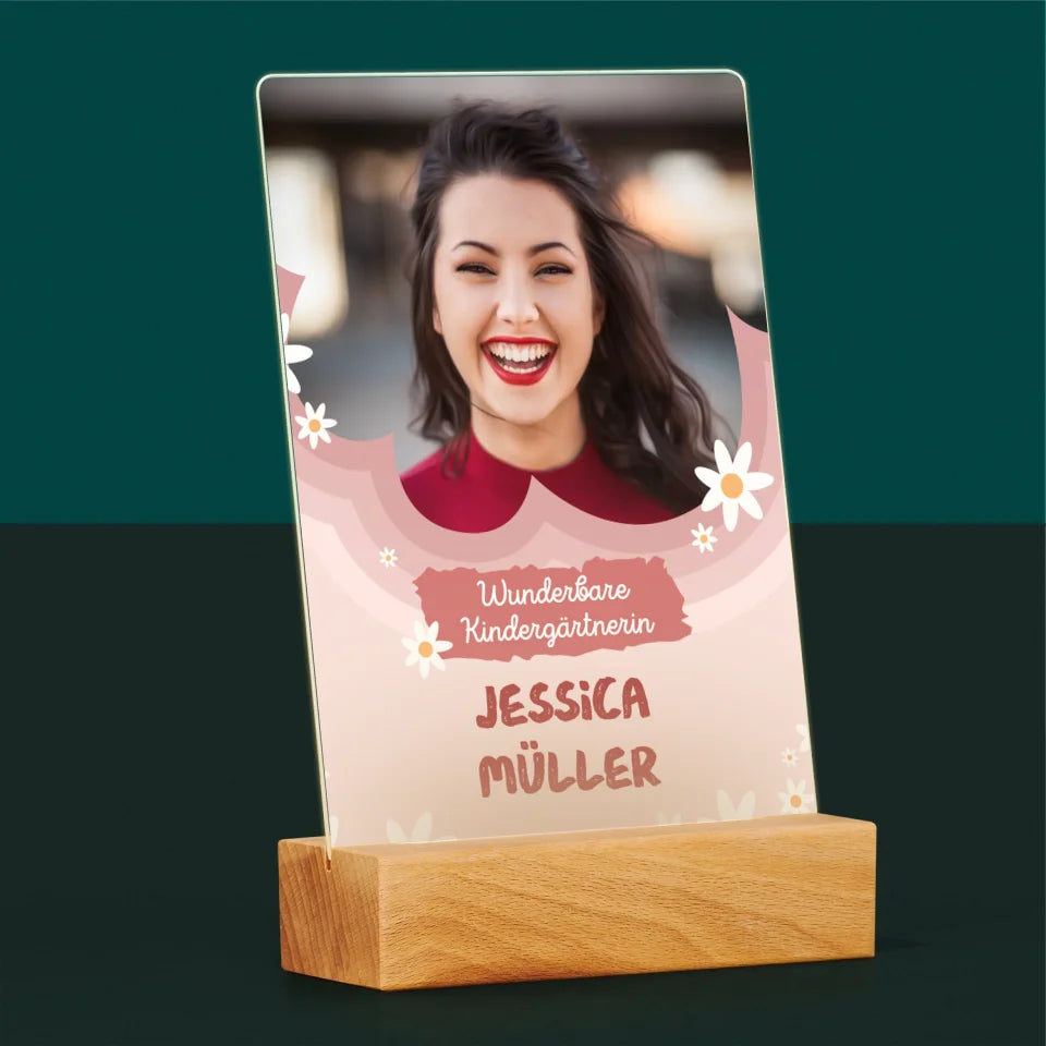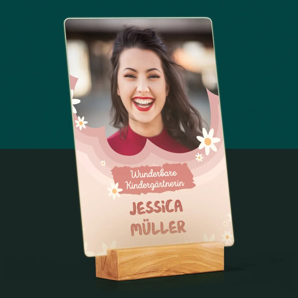 Foto Und Unterschrift: Wunderbare Kindergärtnerin - Druck auf Acrylglas mit LED-Beleuchtung