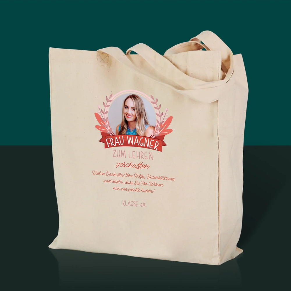 Foto und Bildunterschrift: Made For Teaching – bedruckte Canvas-Tasche | DE - Stofftasche